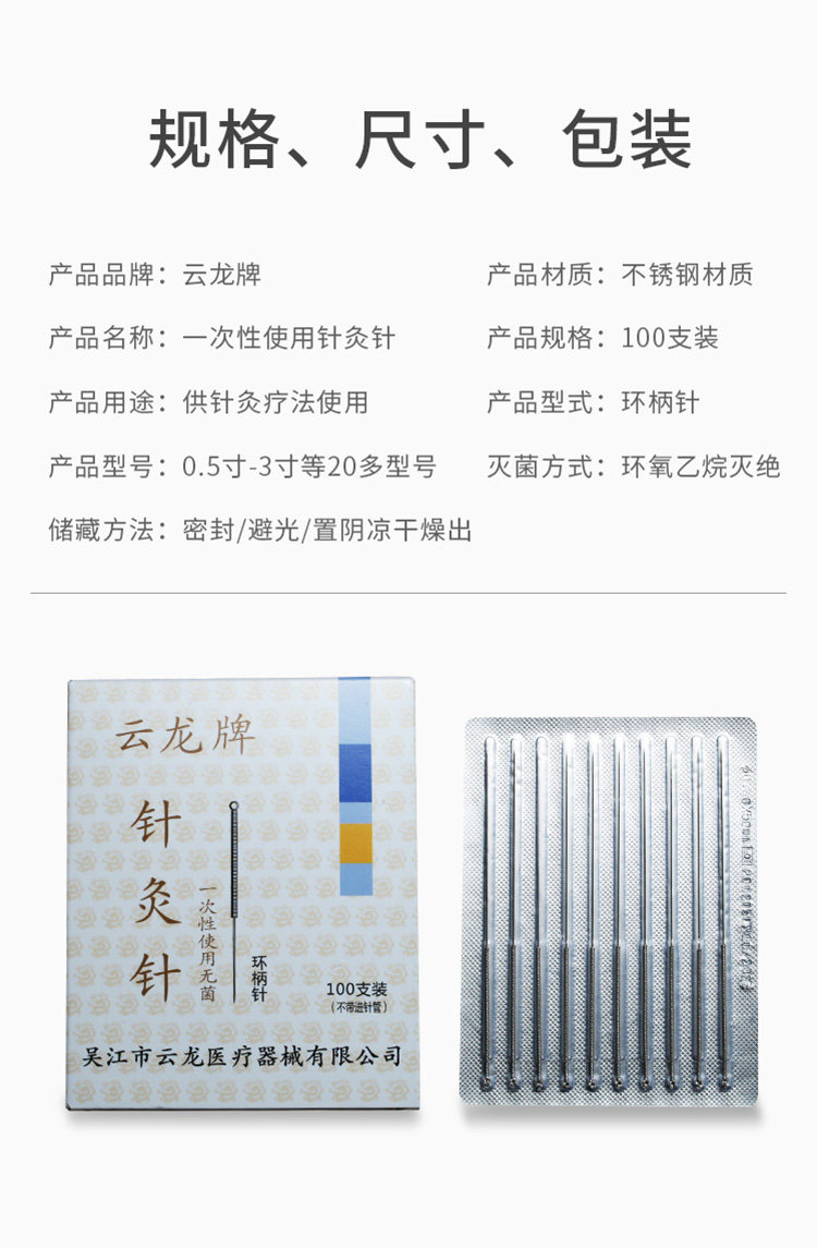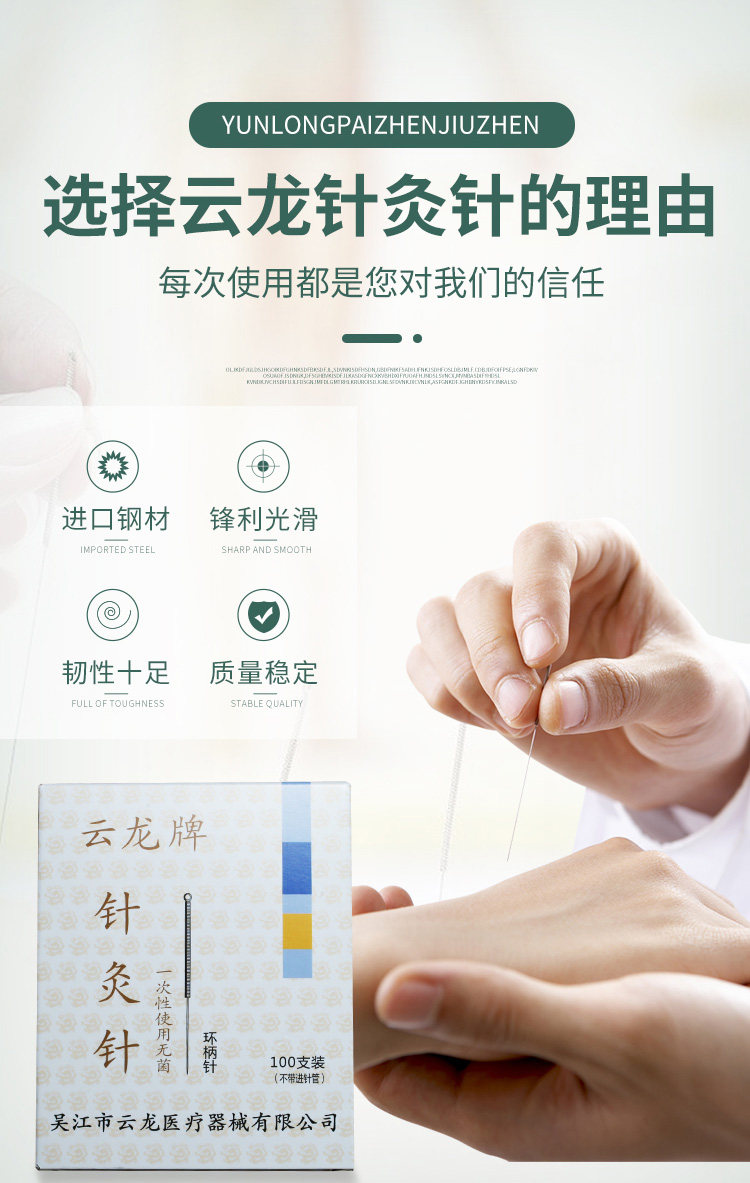 Бренд Юнлонг, иглы для акупунктуры, с кольцевой ручкой, одноразовые, асептические, не серебряные, 100 штук