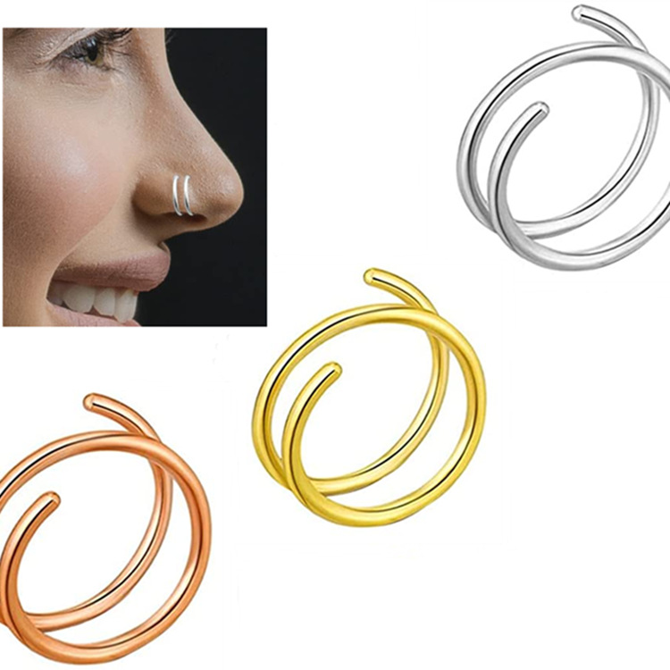 Серьги-колечки из нержавеющей стали, двойные серьги-колечки, серьги из нержавеющей стали, зажим для носа