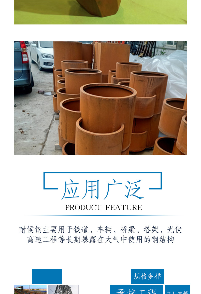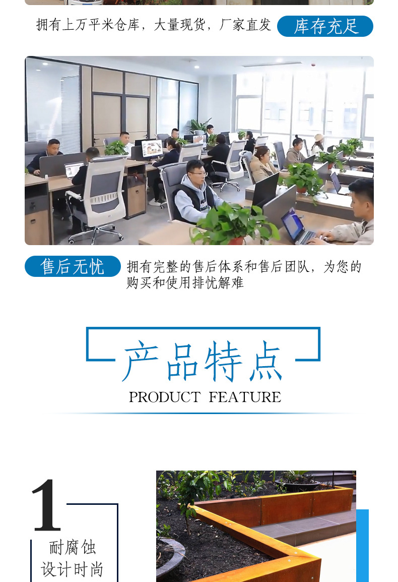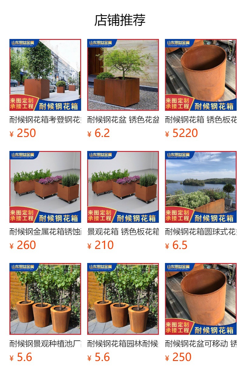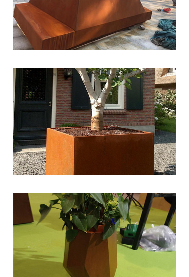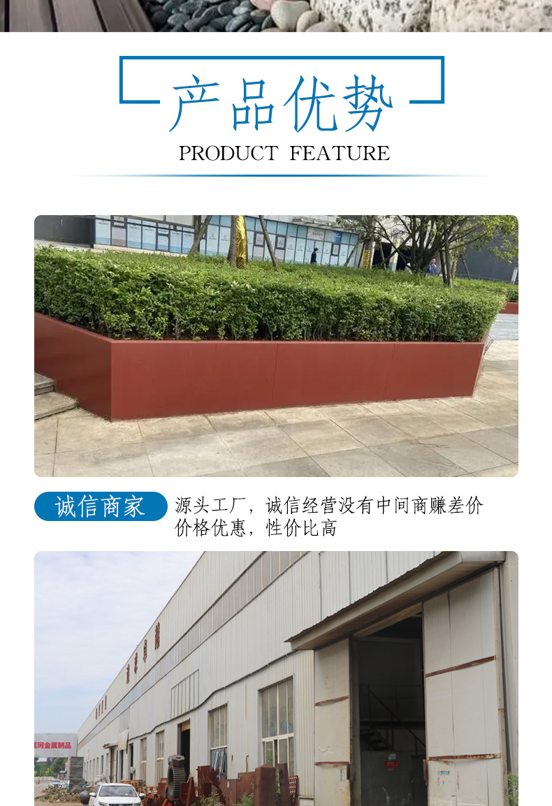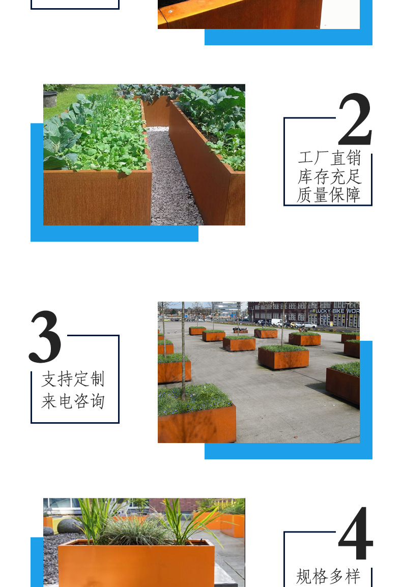 Устойчивый к погодным условиям стальной цветочный ящик для улицы специальной формы, ящик из устойчивого к погодным условиям материала, ландшафтный парк, комбинация цветочных ящиков