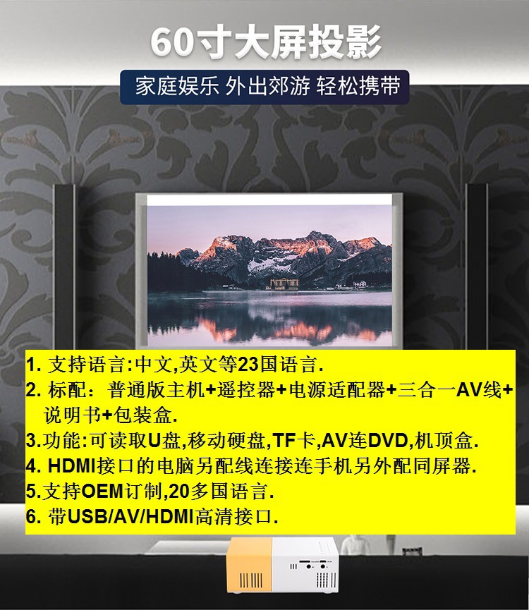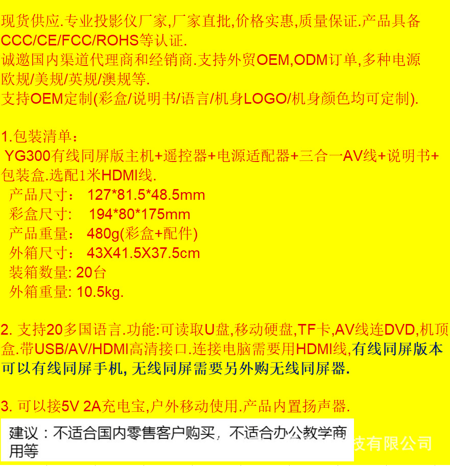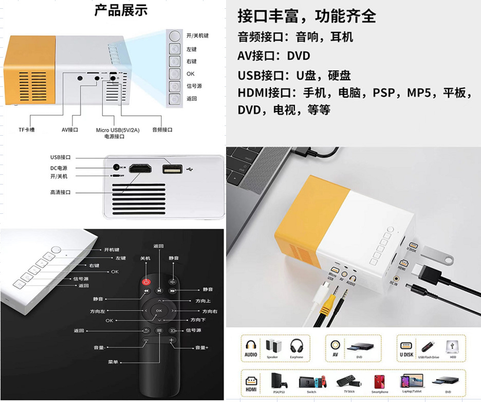 Новый YG300 проводной проектор с дублированием экрана мобильного телефона, домашний LED портативный мини HD проектор