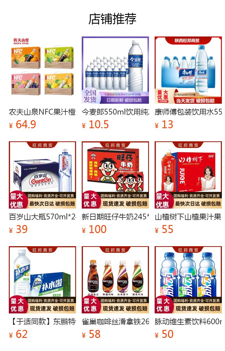 陕西旺邦商贸有限公司,成立于2009年,对酒水饮品行业有十多年的研究,我公司主营的产品康师傅系列���农夫山泉系列、可口可乐系列等,可咨询旺旺,24小时在线。