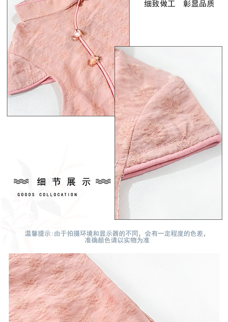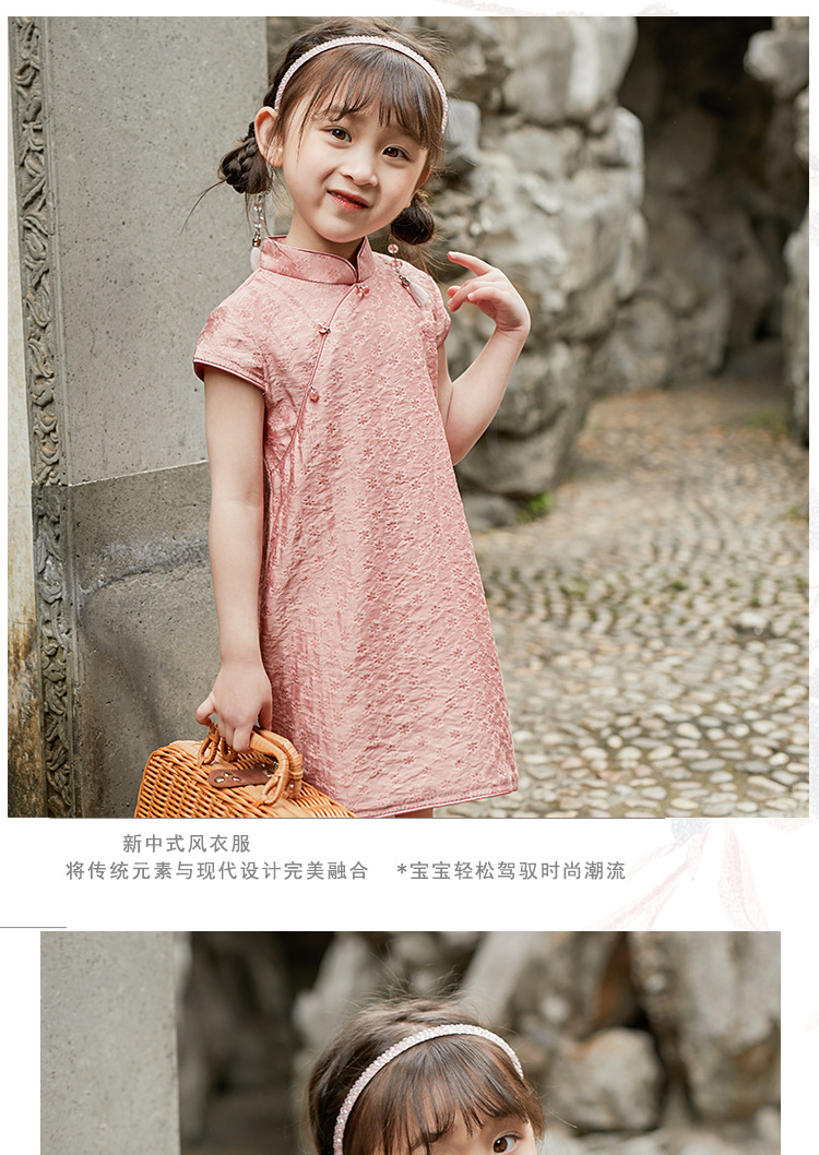 Летний новый стиль чонгсам для девочек с коротким рукавом 2025 принцесса юбка однотонный модный цветочный чонгсам