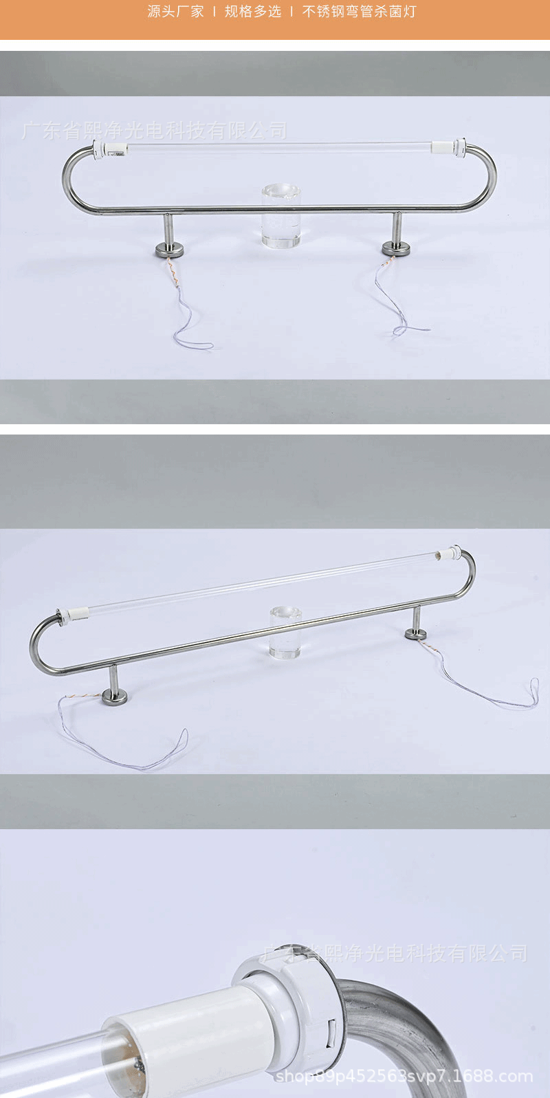 Ультрафиолетовая лампа без дна, с нержавеющим стальным углом, для чистых помещений и пищевых фабрик