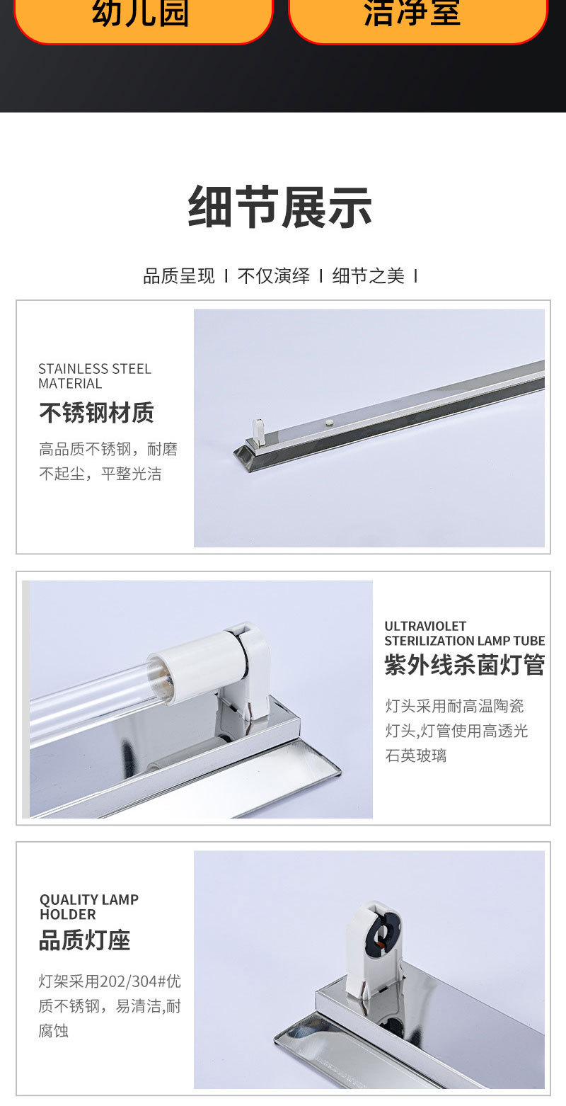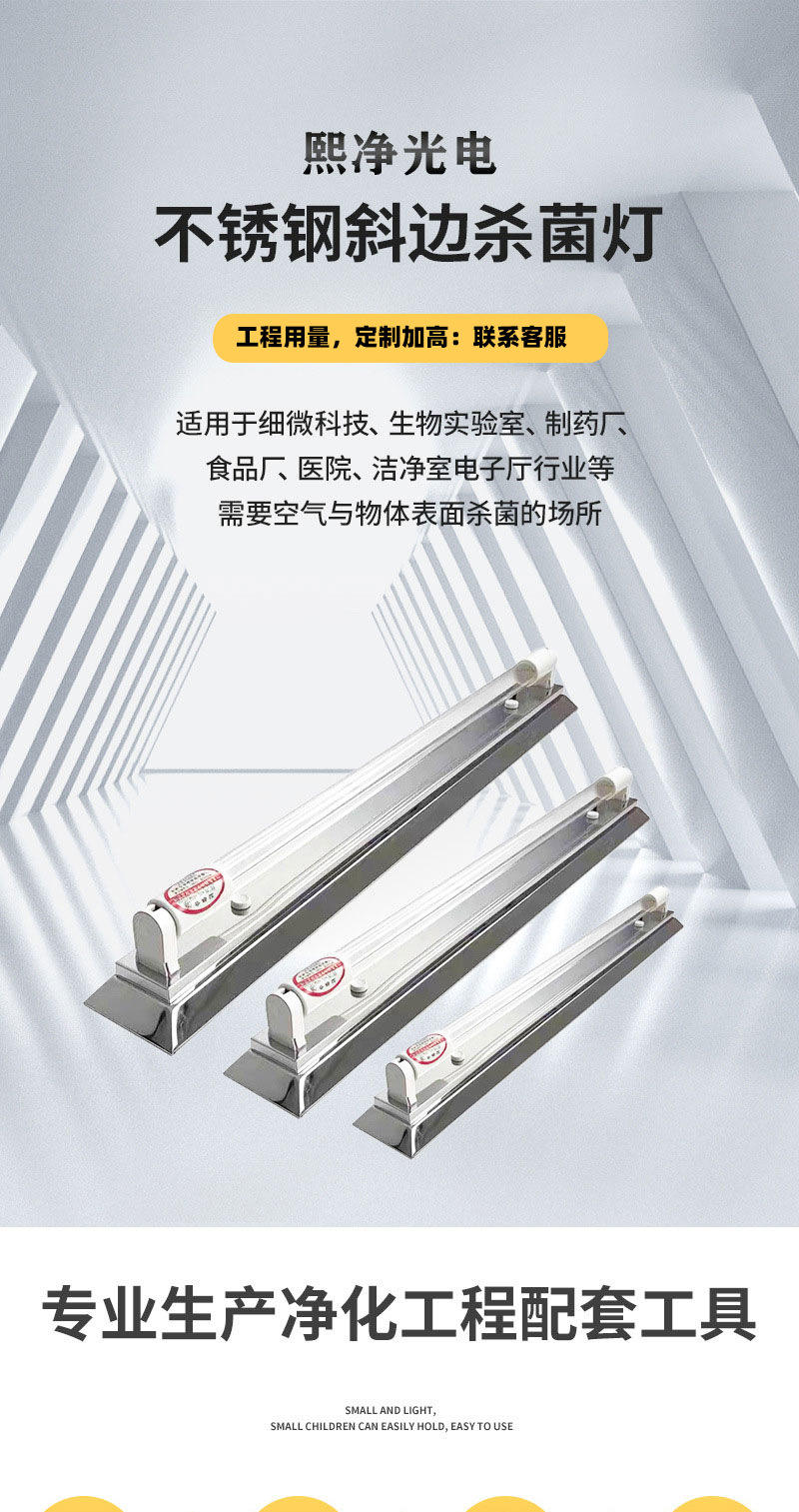 Скошенная нержавеющая гермицидная лампа, потолочная, для лабораторий и детских садов
