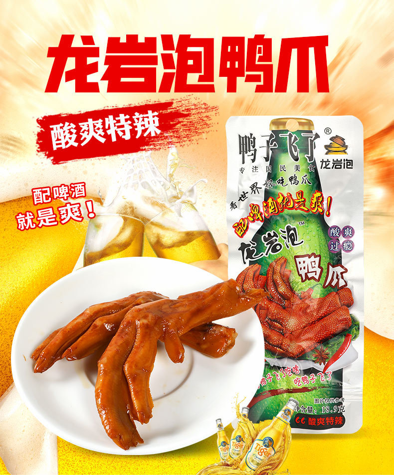 ![]() | The duck flies [chicken feet] beer version 30.9g (single bag) | ¥1.89 / ≈ 23 ₽ | 1328 | 5074119453783 | |