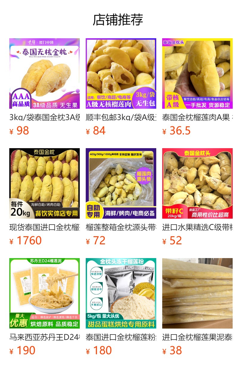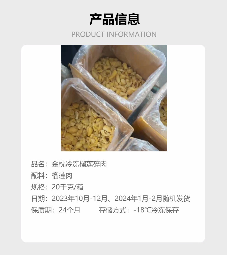 泰国金枕头榴莲碎块 规格:20kg/箱 整箱批发
