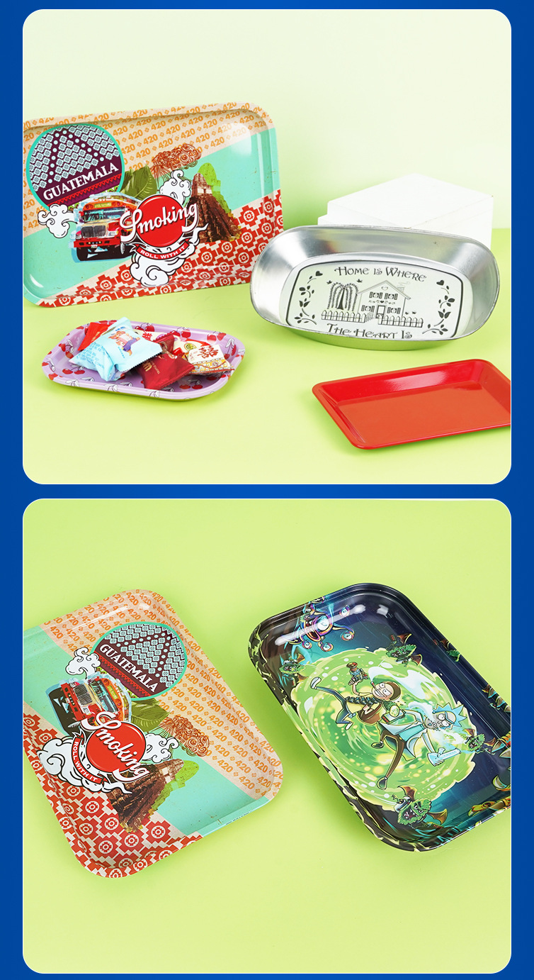 Кастомизированные металлические подносы для сигарет, жестяные подносы, утолщенные контейнеры, большие и маленькие металлические подносы с узором, железные подносы для операций