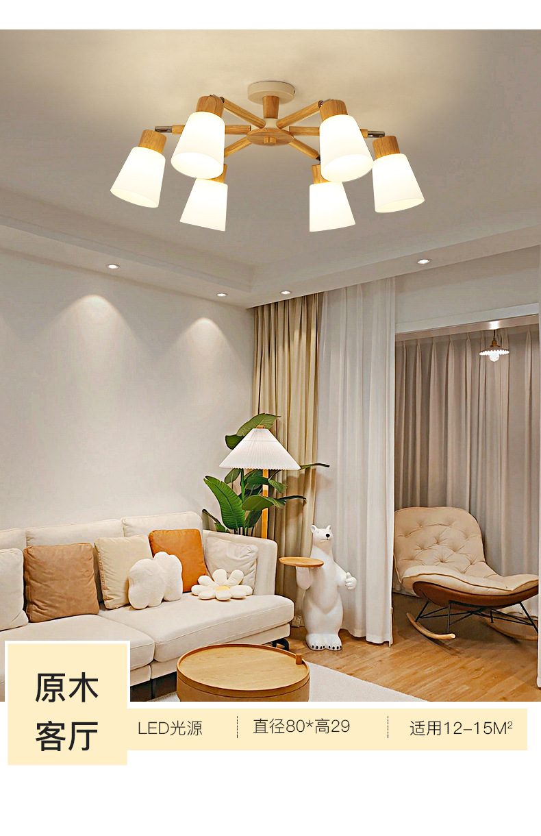 北欧吊灯客厅灯简约现代大气ins风主卧室餐厅灯家用日式原木灯具