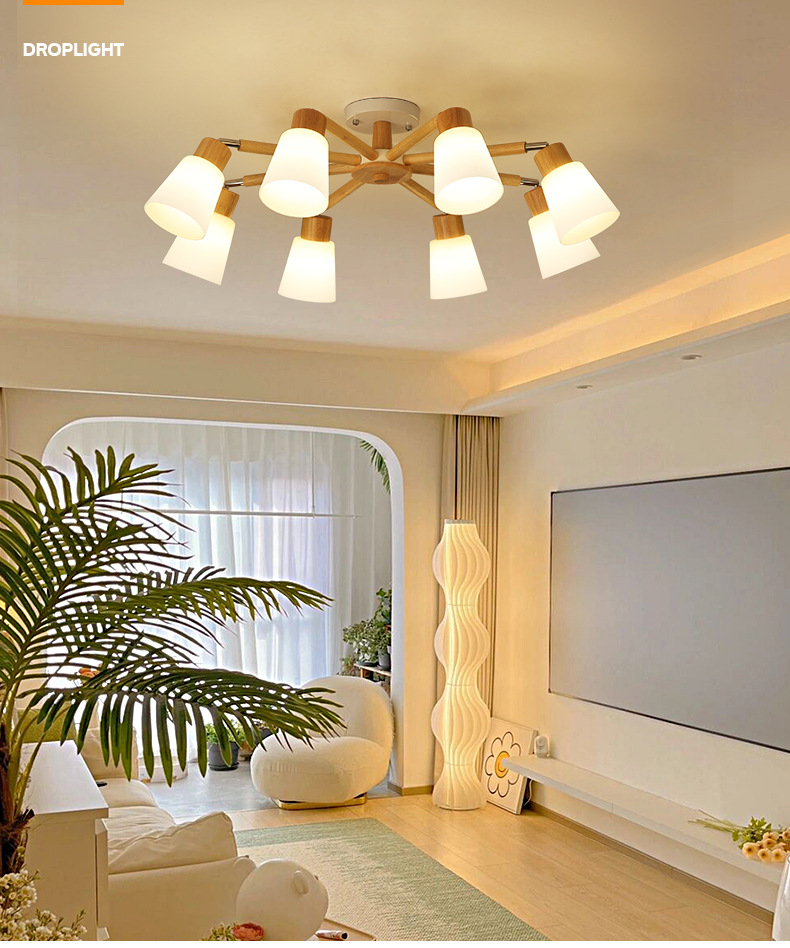 Люстра в скандинавском стиле для гостиной, простая современная, атмосферная, для спальни и столовой, японские бревенчатые лампы