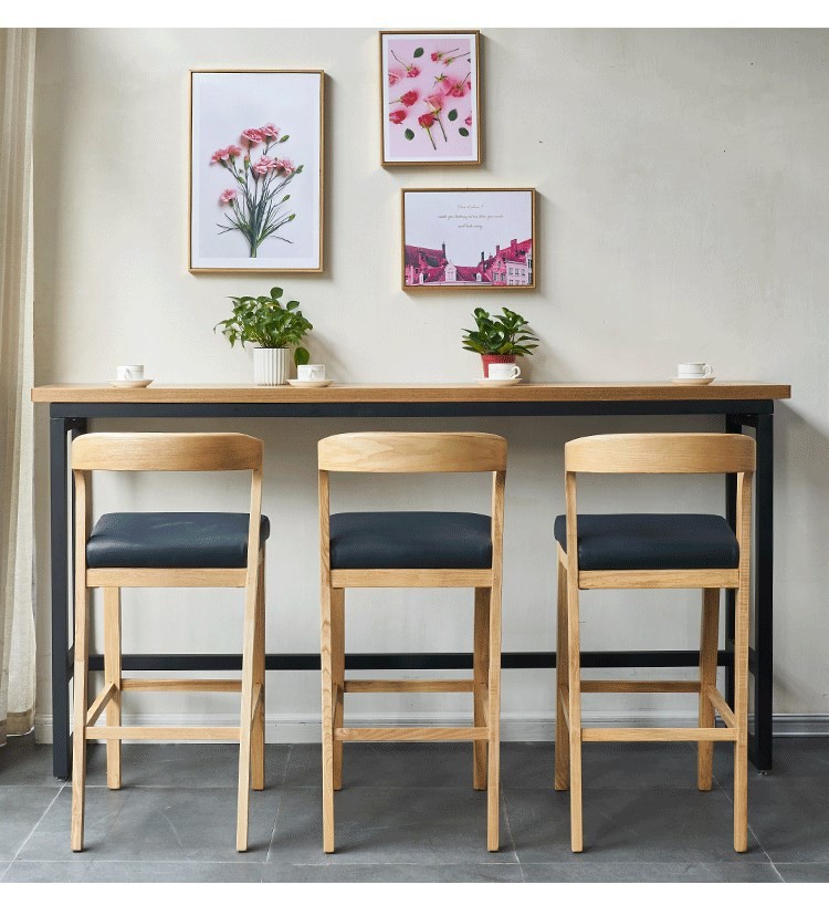 Современный простой барный стул из массива дерева для молочного чая, кафе, неформальный барный прилавок, высокий стол и стулья