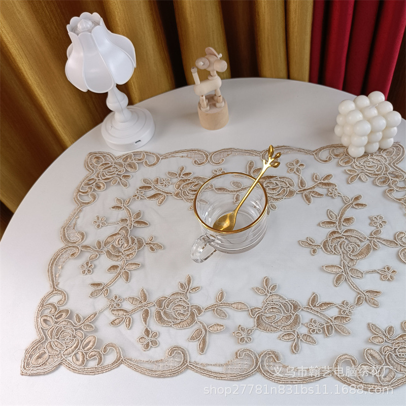 Европейская двухслойная сетка Кружевная вышивка Платок для чайного сервиза Чехол для прикроватной тумбочки Пылезащитная декоративная ткань