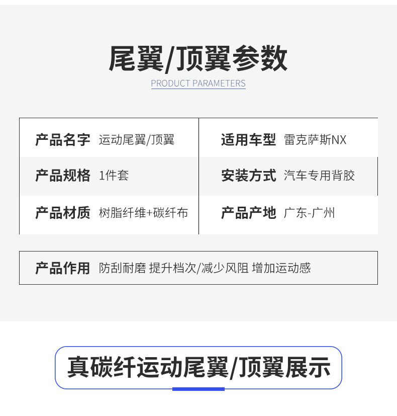 Подходит для 22 Lexus NX углеродное волокно задний спойлер NX260 модификация