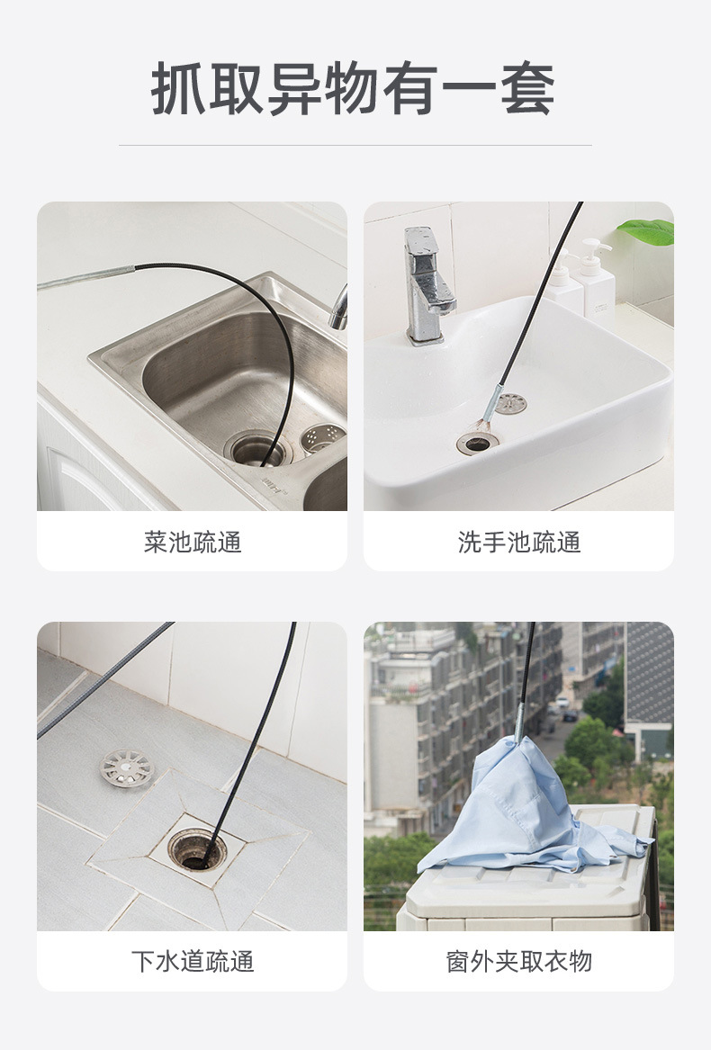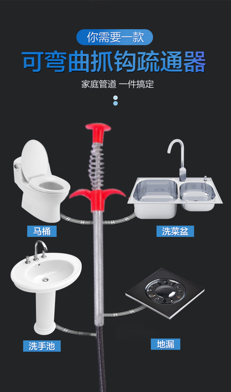 Прочиститель труб с четырьмя захватами, инструмент для очистки раковины