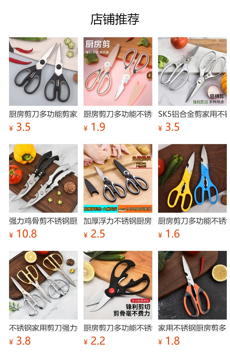 ![]() | Kitchen scissors three-piece box | ¥3.3 / ≈ 40 ₽ | 99968 | 5144909526505 |