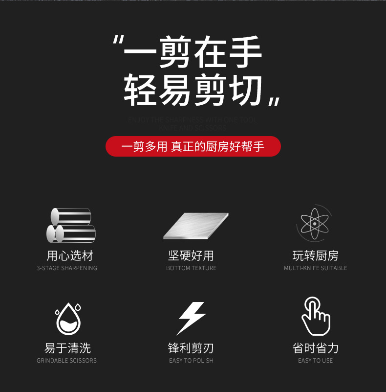 三件套装厨房剪 多功能鸡骨剪手工剪家用不锈钢剪刀厨房厨用剪刀