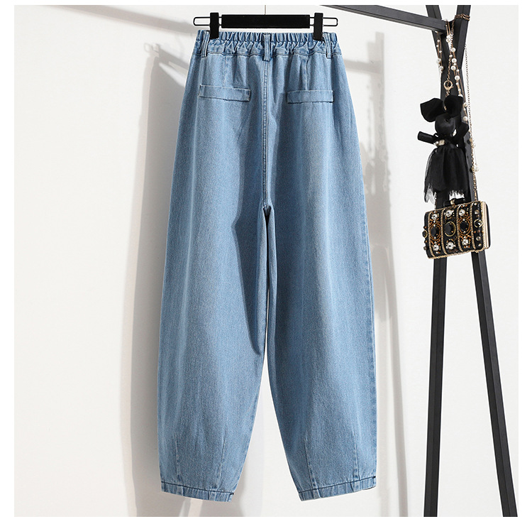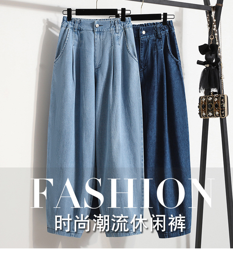 Брюки большого размера осень 2022, джинсы с высокой талией, девять точек, женские джинсы
