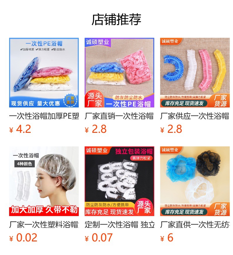 Item number Disposable plastic shower cap
