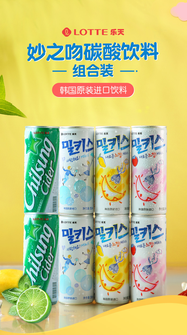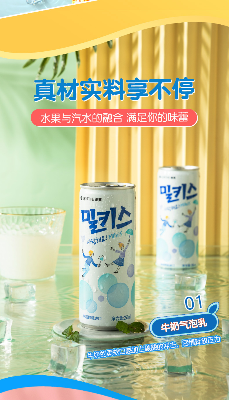Импортированный газированный напиток Lotte Milkis из Южной Кореи, вкус молочной кислоты