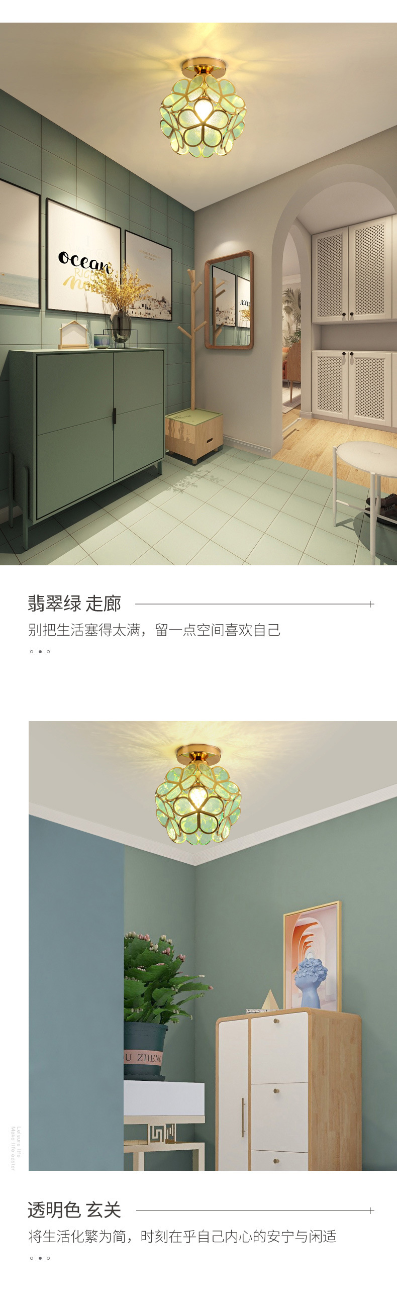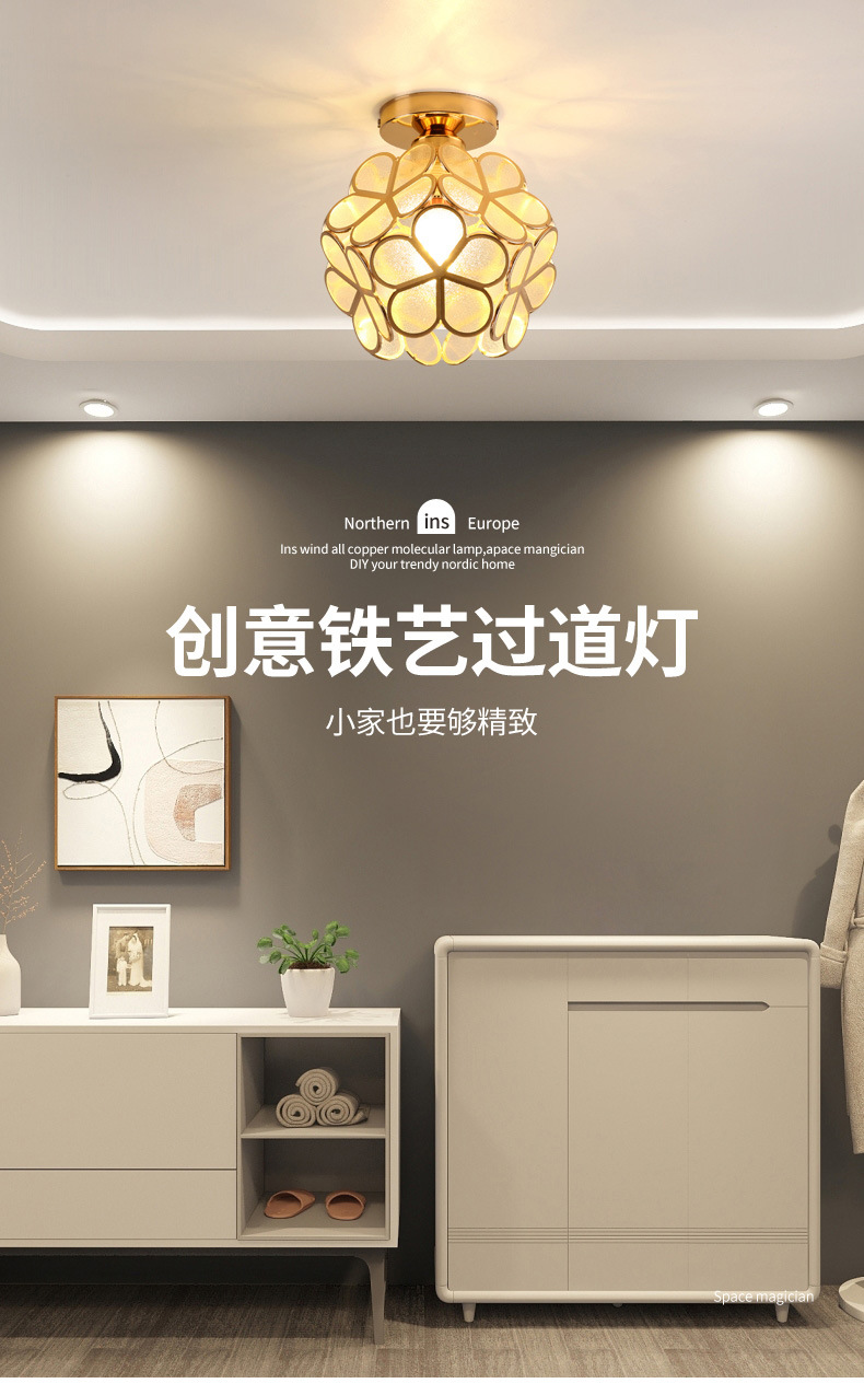 过道灯走廊灯具阳台玄关入户创意轻奢现代简约水晶北欧卧室吸顶灯