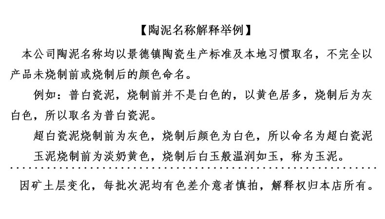 备注:其中 粗陶泥 因机器无法包装,为手工包装拍前请注意!