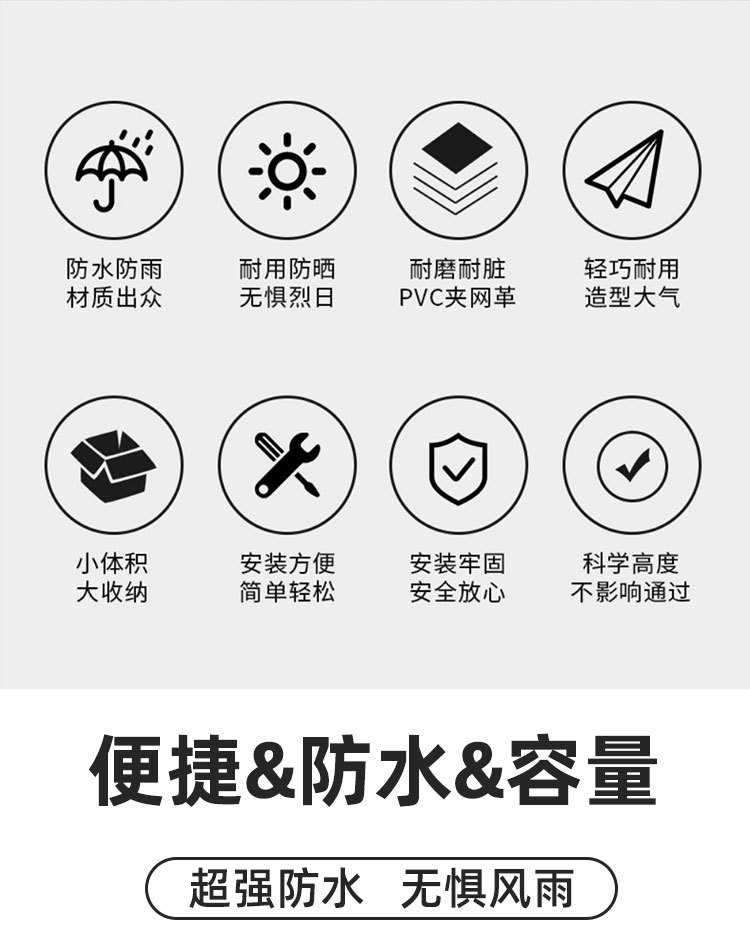 产品特点:防水防雨,大容量,可折叠收纳,不占空间。