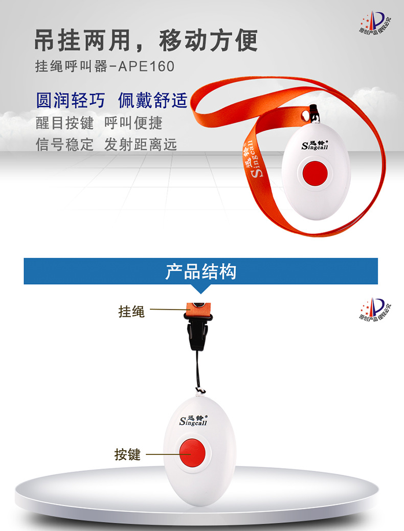 Беспроводной пейджер Xunling для домашнего использования, портативный мобильный APE160 для пожилых, легкий и портативный