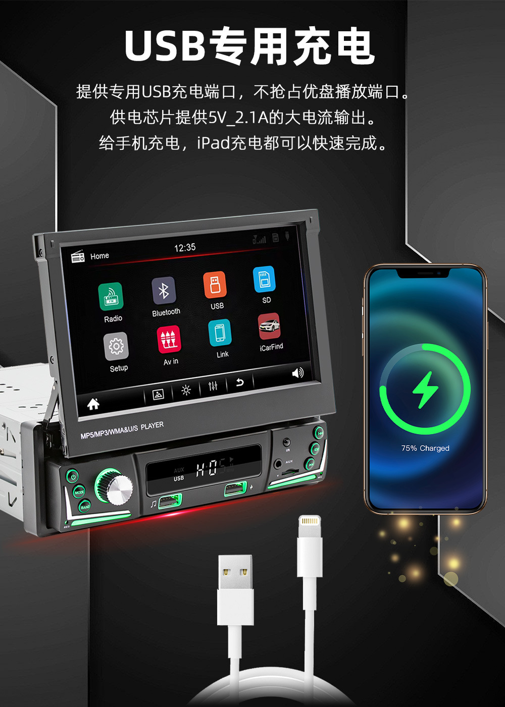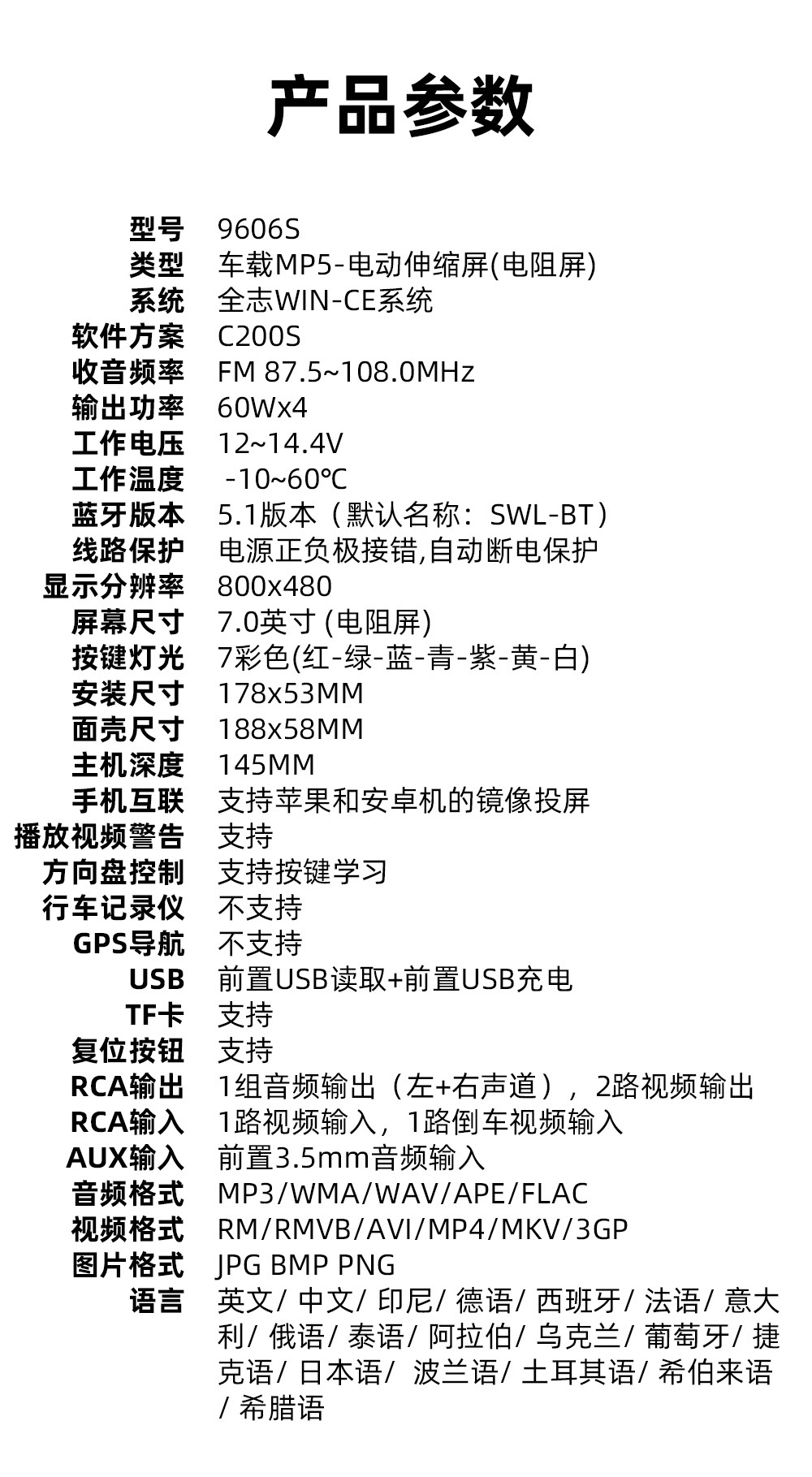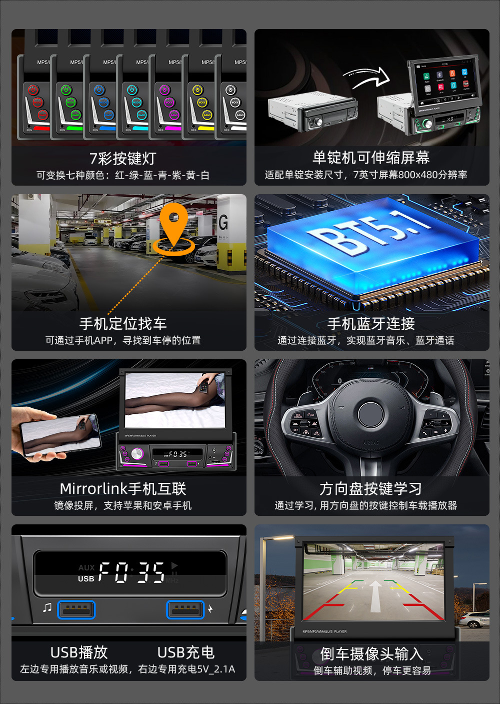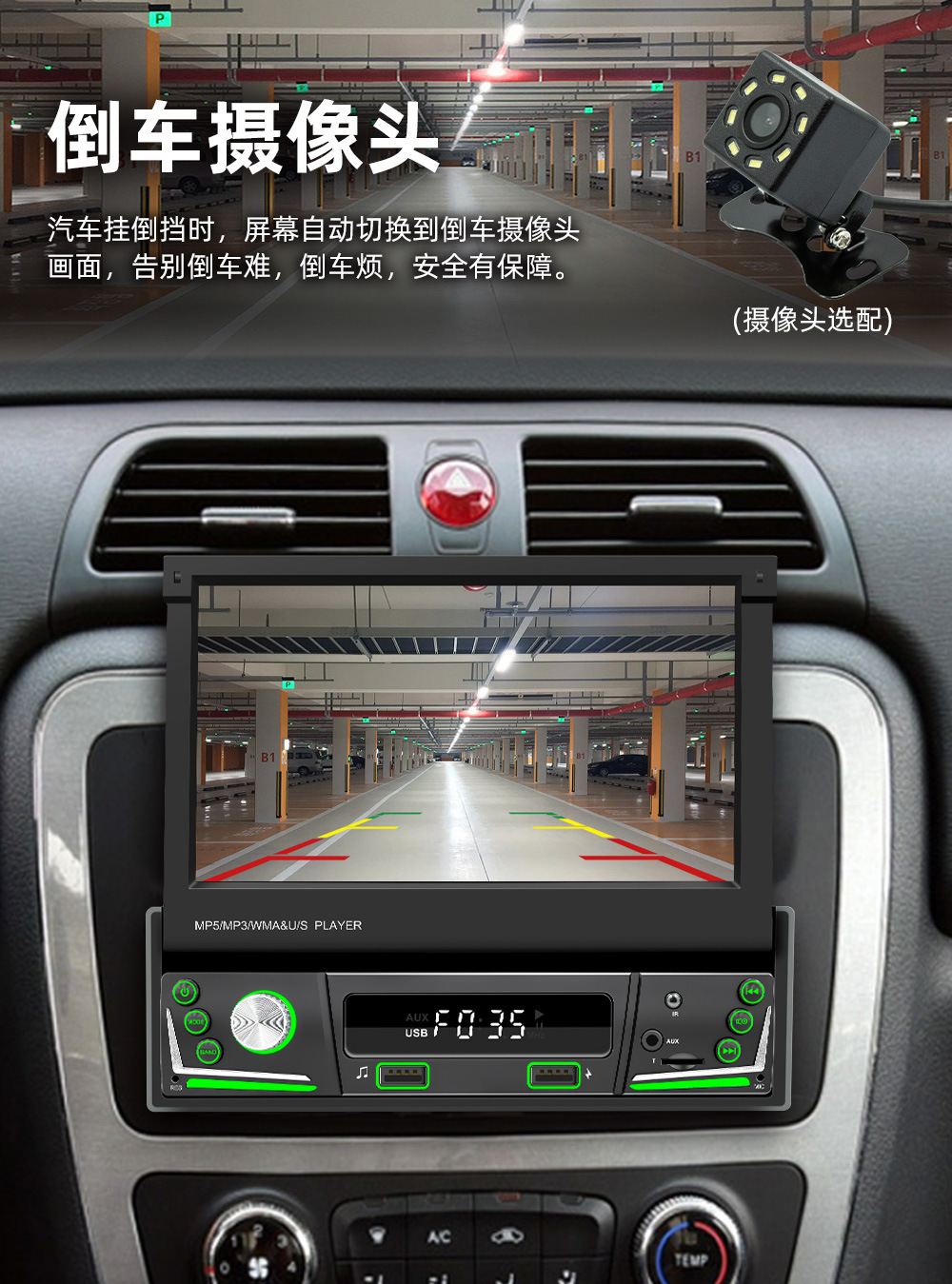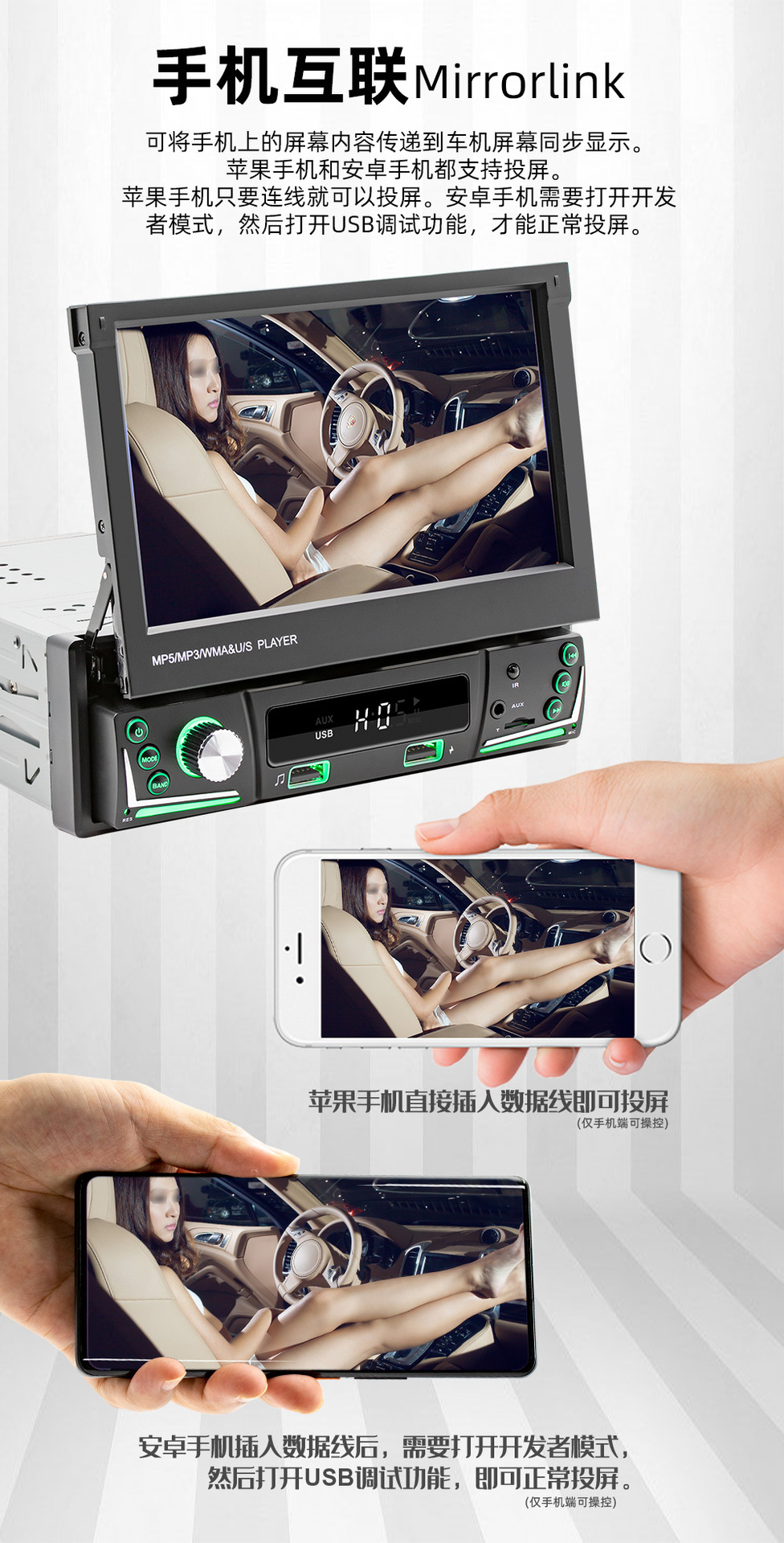 类 型:车载MP5-手动伸缩屏 (可选配电动伸缩)