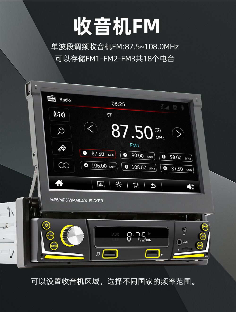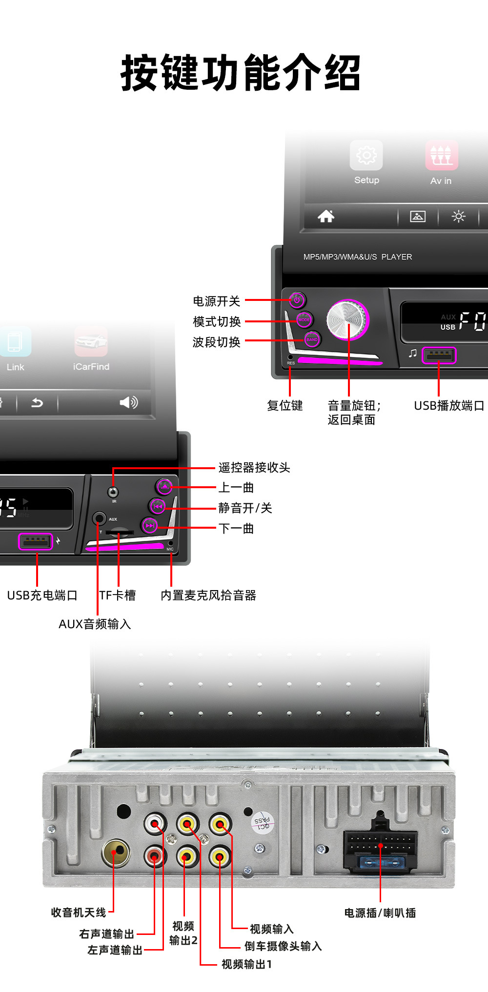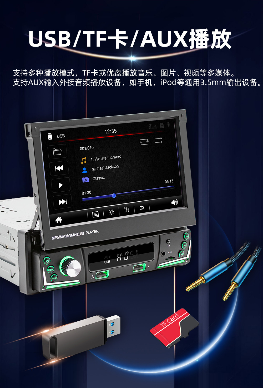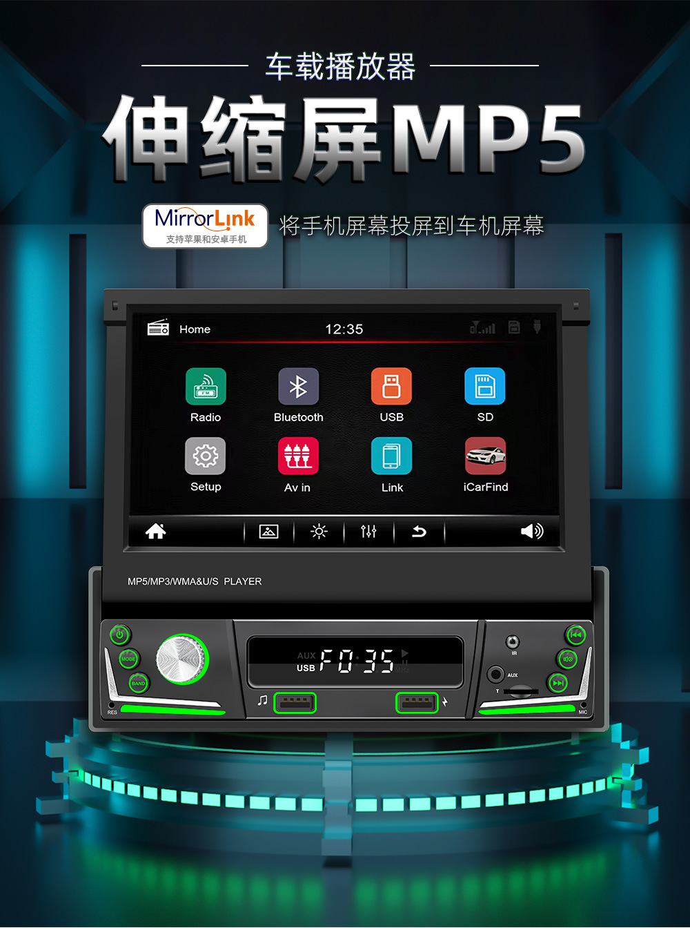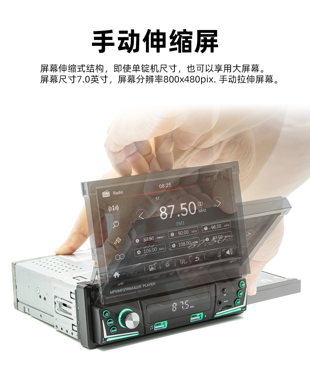 手动伸缩屏车载MP5播放器