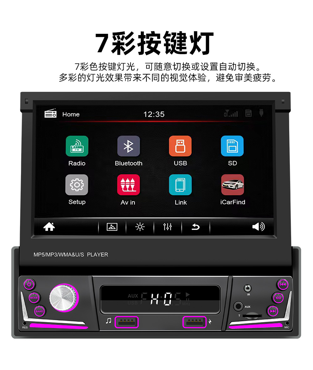 7 дюймовый MP5 плеер с телескопическим экраном Bluetooth позиционирование универсальный