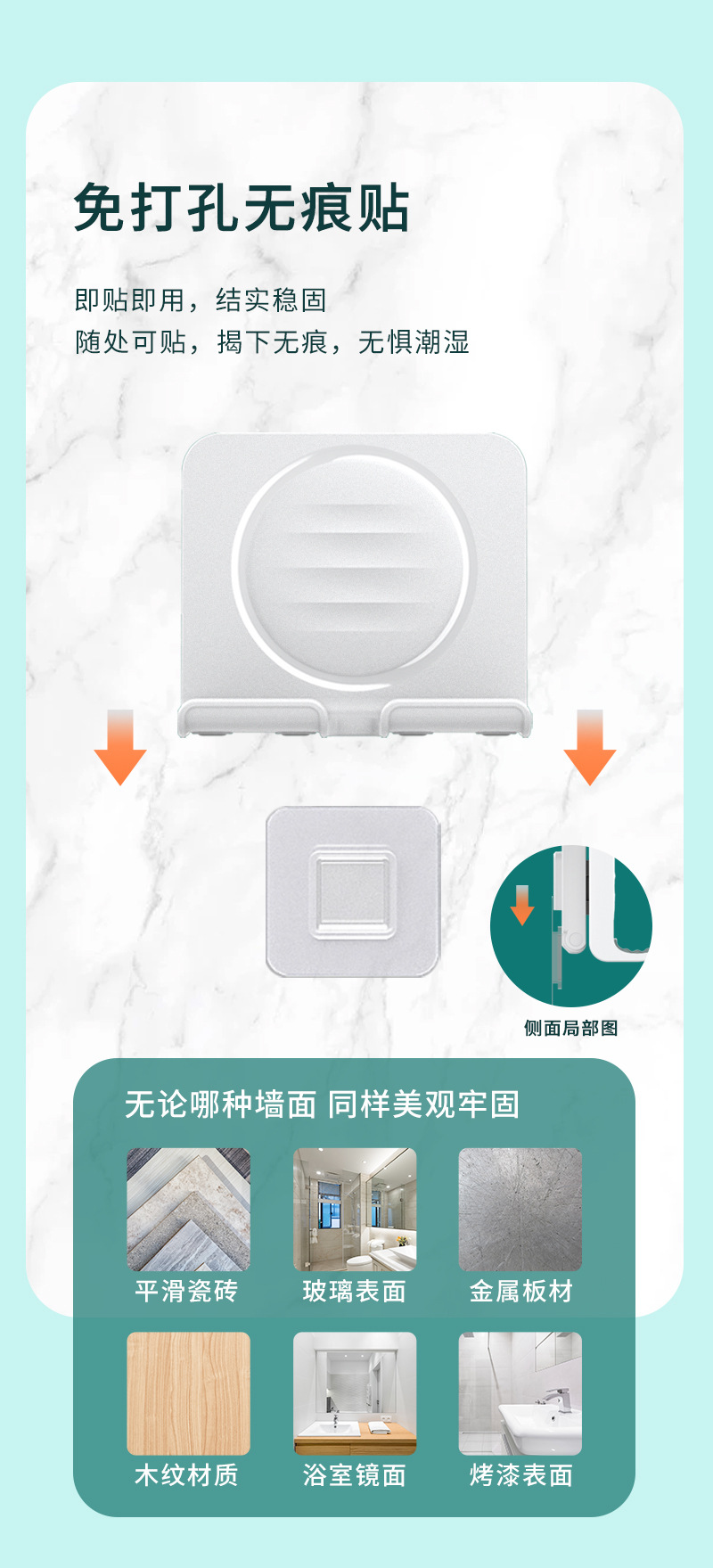 5.无痕壁挂贴:胶贴免打孔,撕下无痕不伤墙