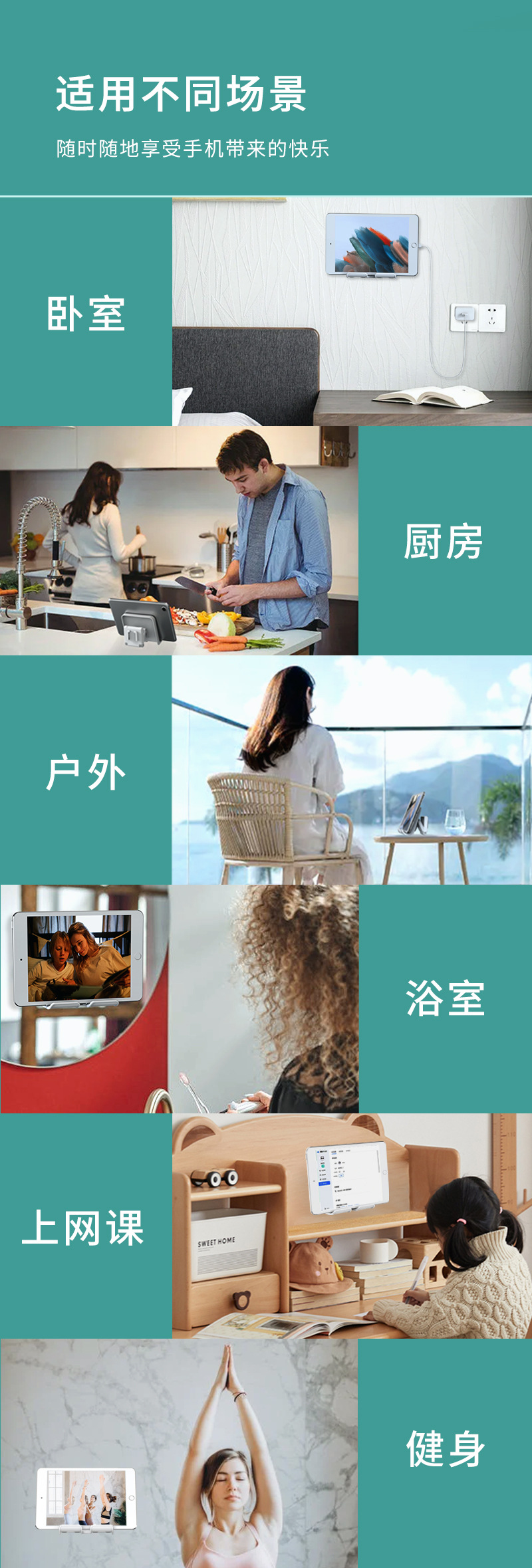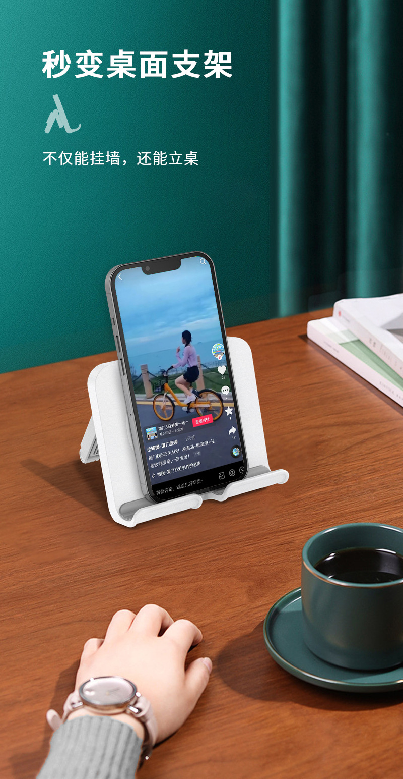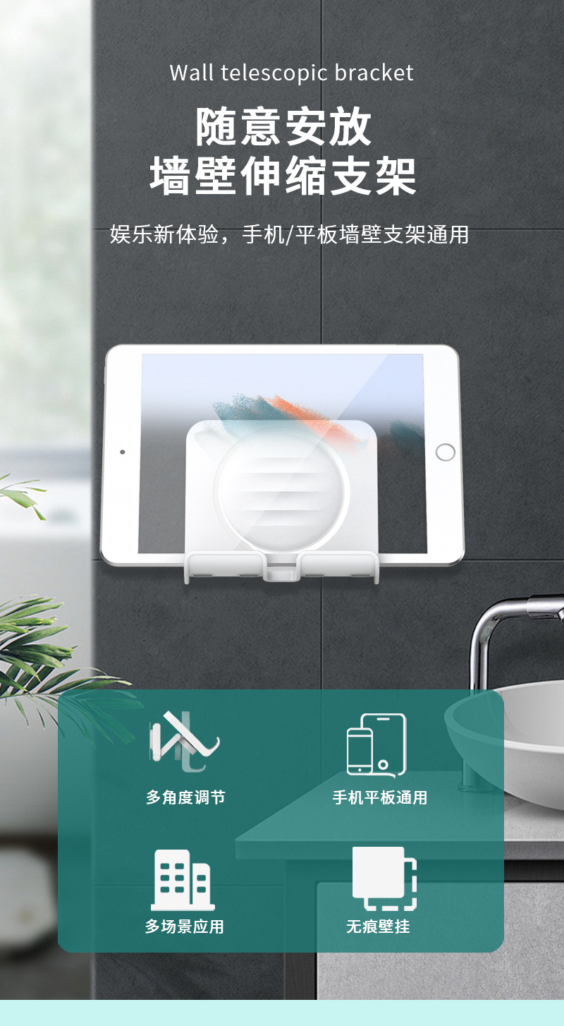 1.多功能支架:手机平板通用,既是壁挂支架,也是桌面支架
