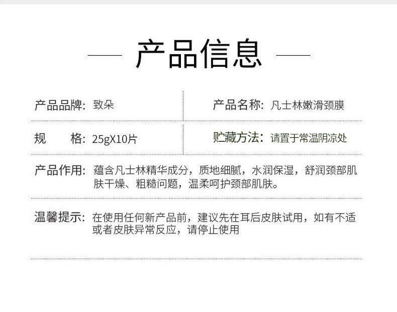 ![]() | Zhiduo vaseline smooth neck mask 25gx10 pieces | ¥3.5 / ≈ 43 ₽ | 9866376 | 5739868896567 |