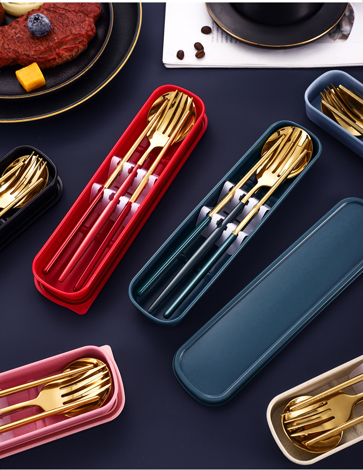Портативные столовые приборы из нержавеющей стали, три предмета: вилка, ложка, палочки, подарок для студентов