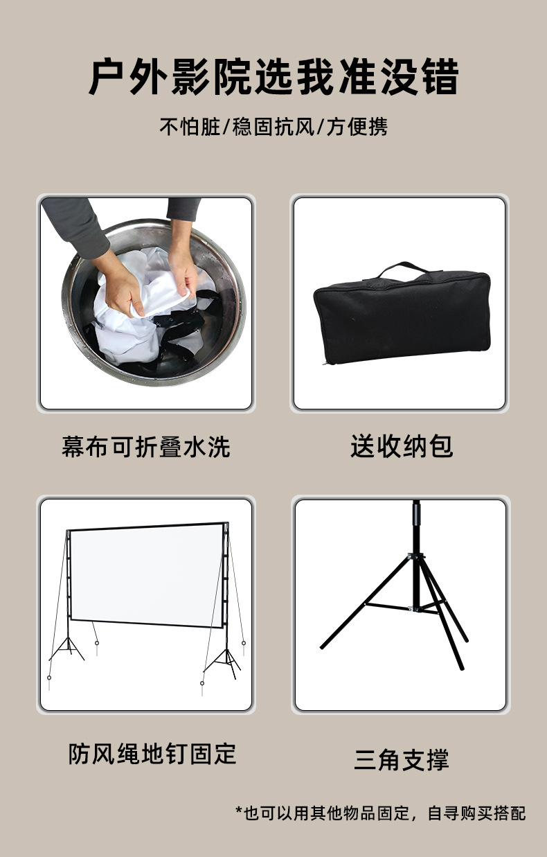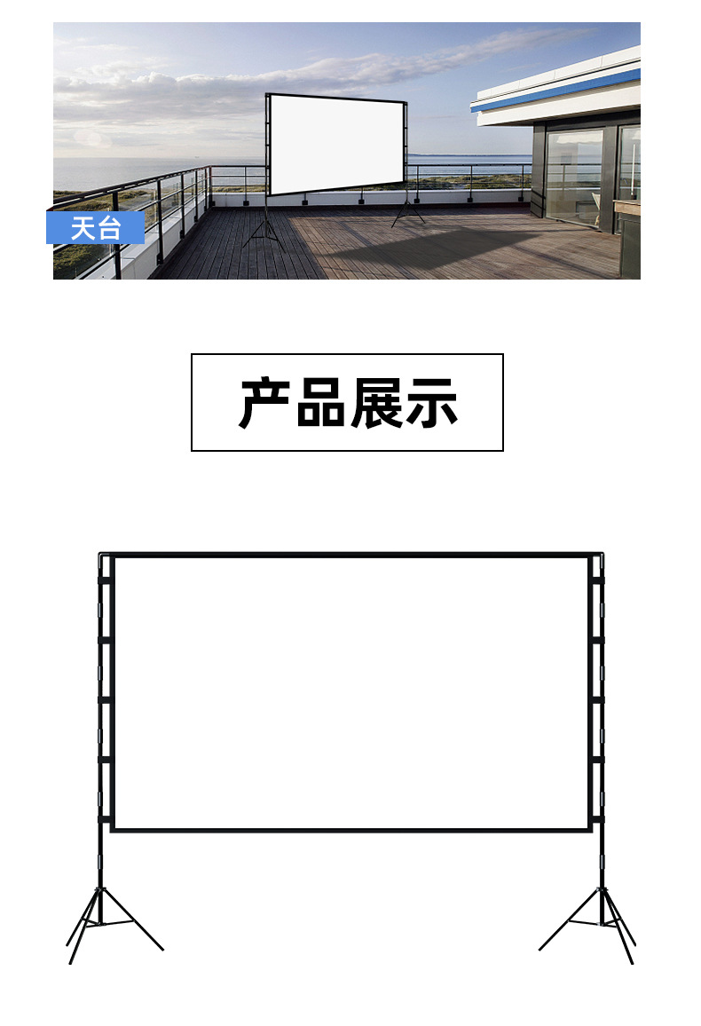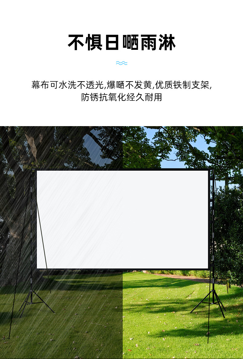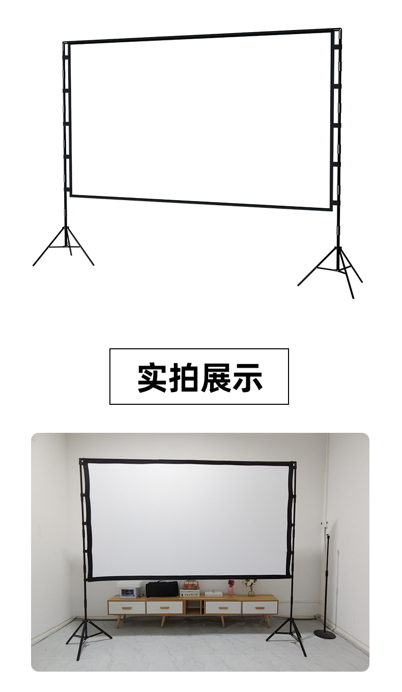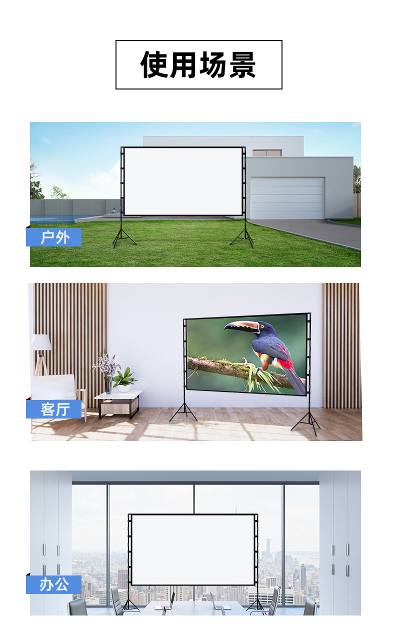 支架幕布以其便携的特征和经济的价格,深得人们的喜爱,流动性的场所都能看见它的身影。从这个会议室拿到另一个会议室;从这个教室拿到另一个教室,从公司带到培训基地、展会场馆或者播放一场户外电影。赠送收纳包,不用时只要将它收起来放在公司、学校、家里某个角落。不占用场地,收放都非常方便!
