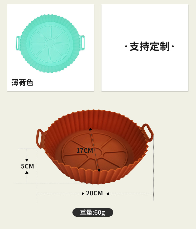 【装箱规格】空气炸锅圆形立体烤盘20*17*5CM 60G:单个装200个/箱,箱规:49*43*38.5cm