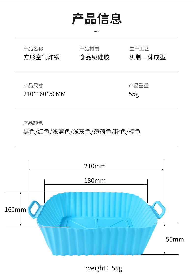 空气炸锅方形立体烤盘21*16*5CM 55G:单个装250个/箱,箱规:49cm*42cm*38.5cm