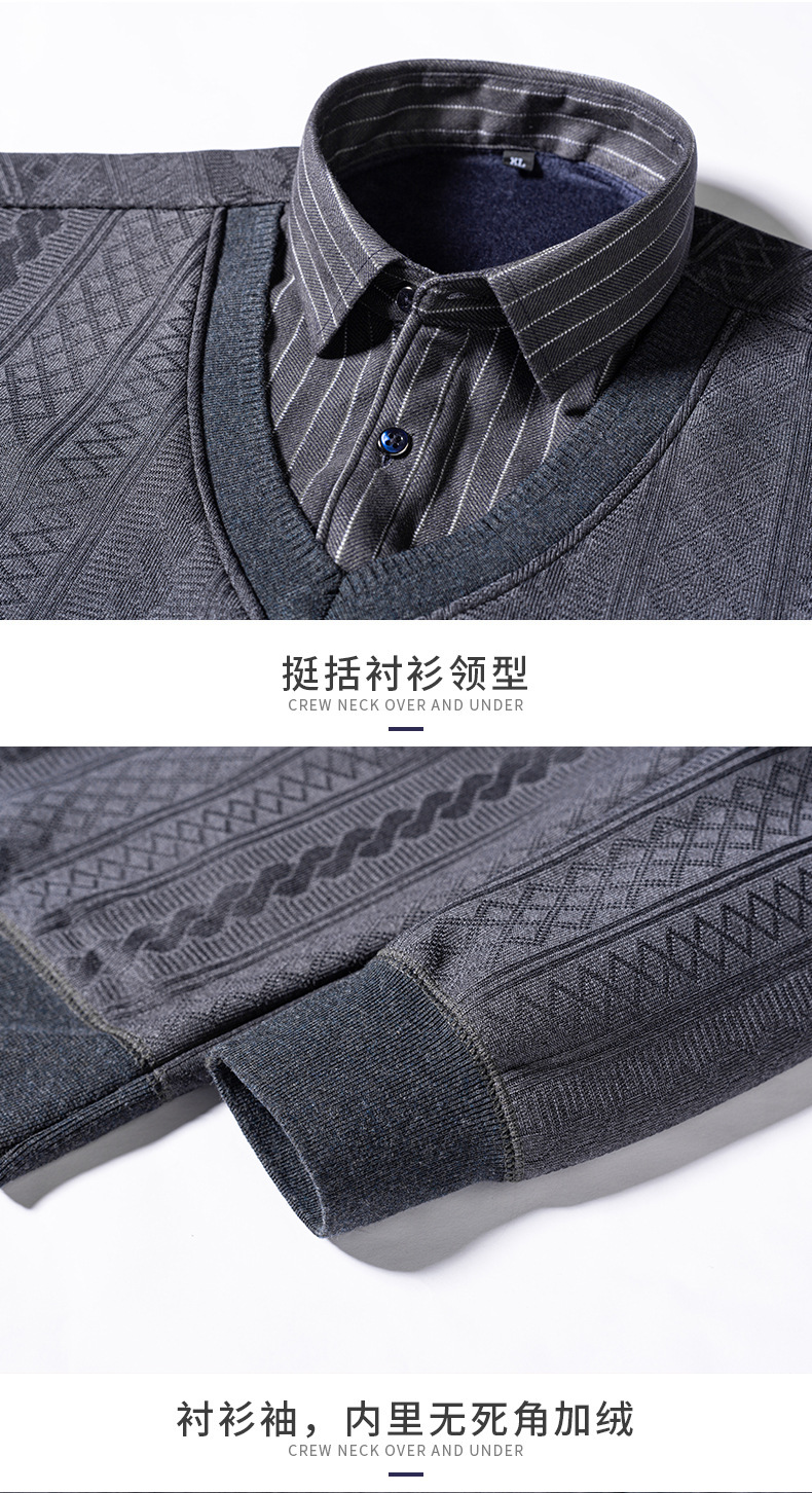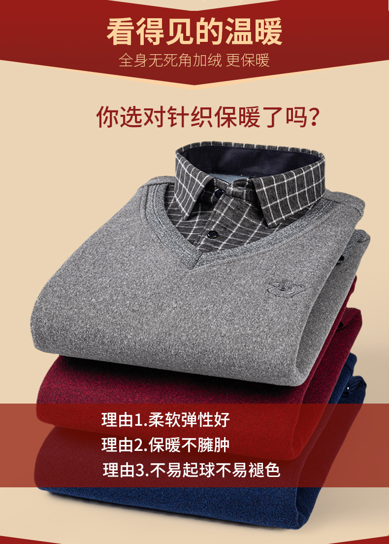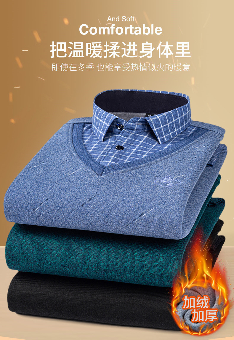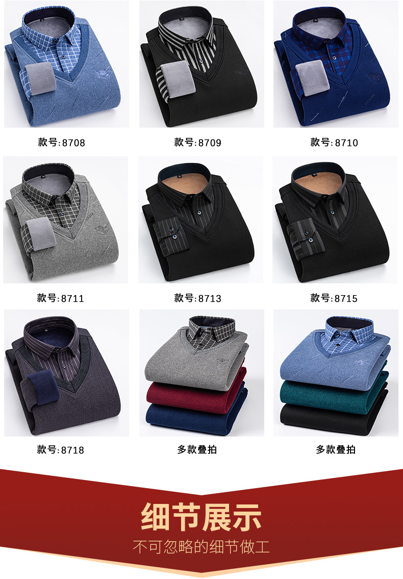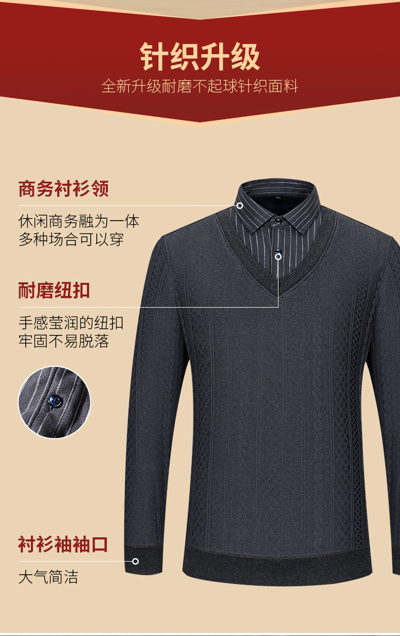 Вязаная рубашка для мужчин, фальшивый комплект, деловой стиль, длинный рукав