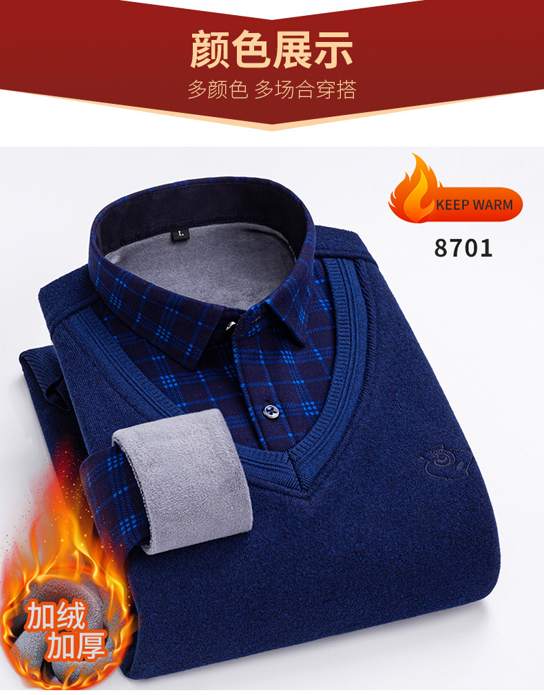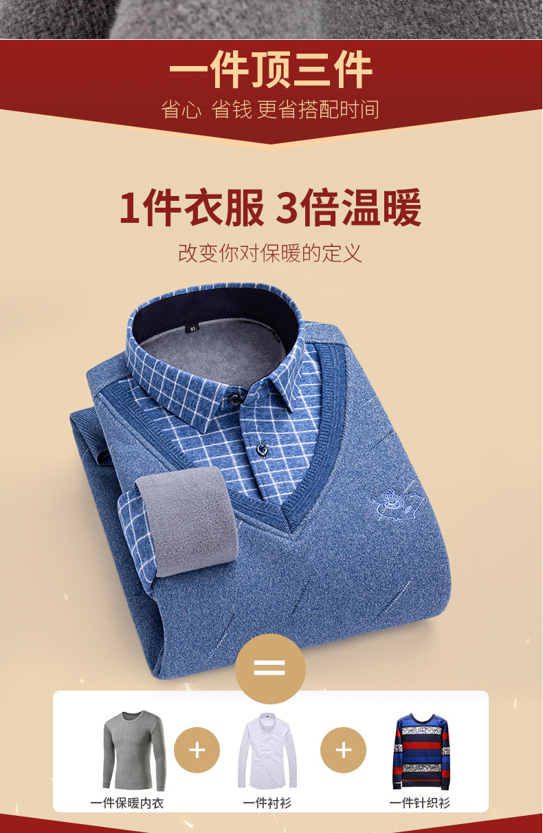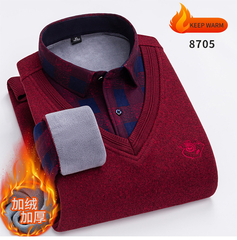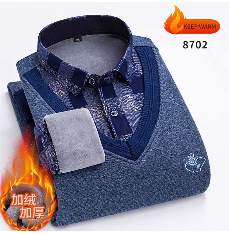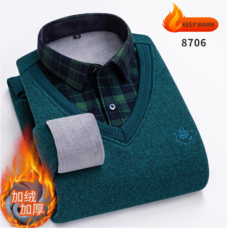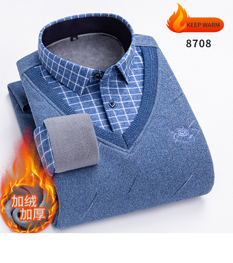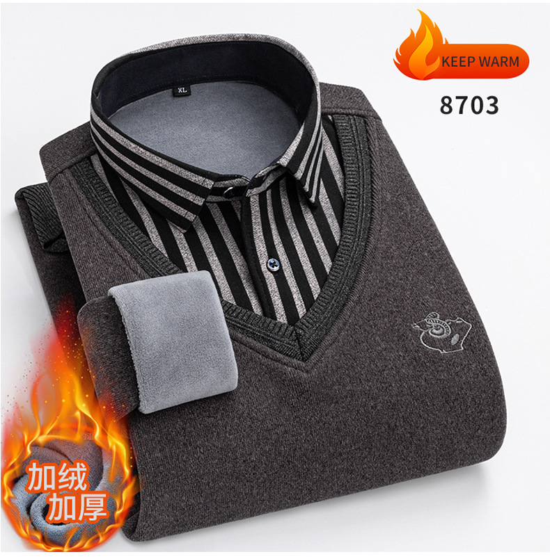 Вязаная рубашка для мужчин, фальшивый комплект, деловой стиль, длинный рукав