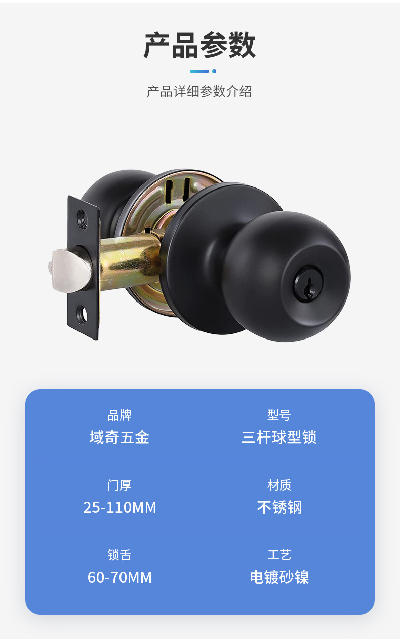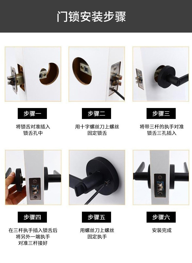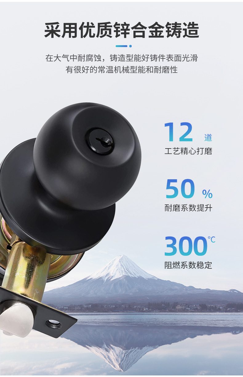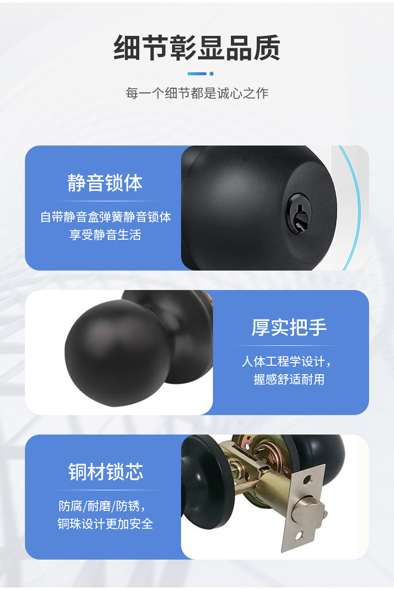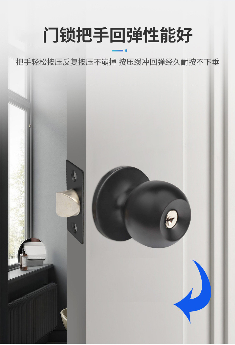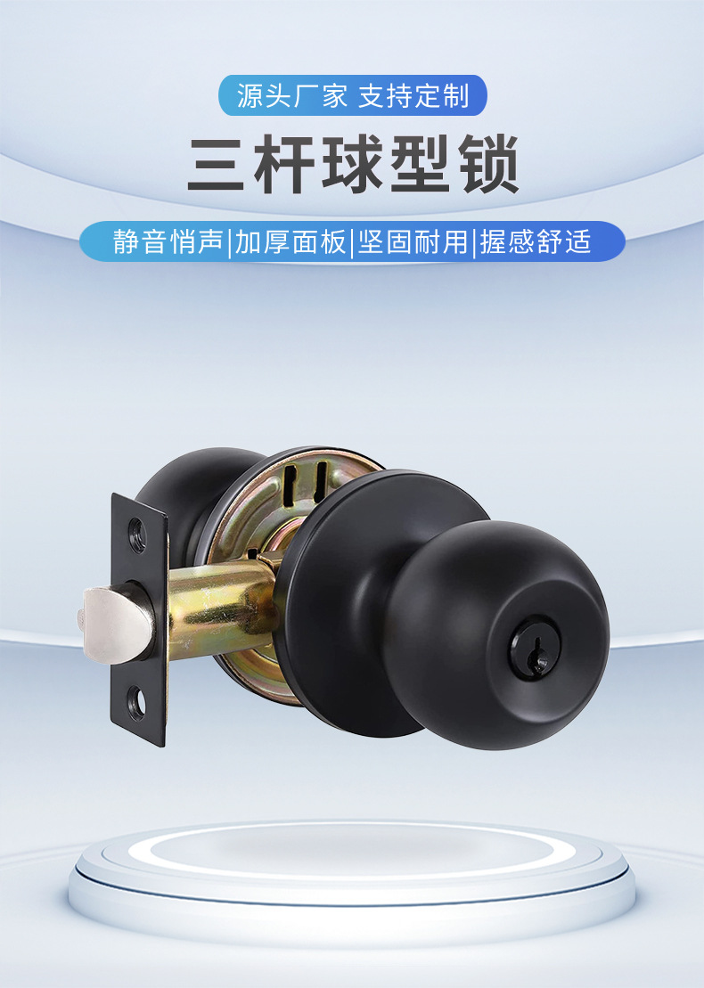 Замок с трёхполюсным шариком черный антивандальный медный сердечник простой дверной замок для спальни бесшумный дверной замок кросс-бордерная оптовая продажа