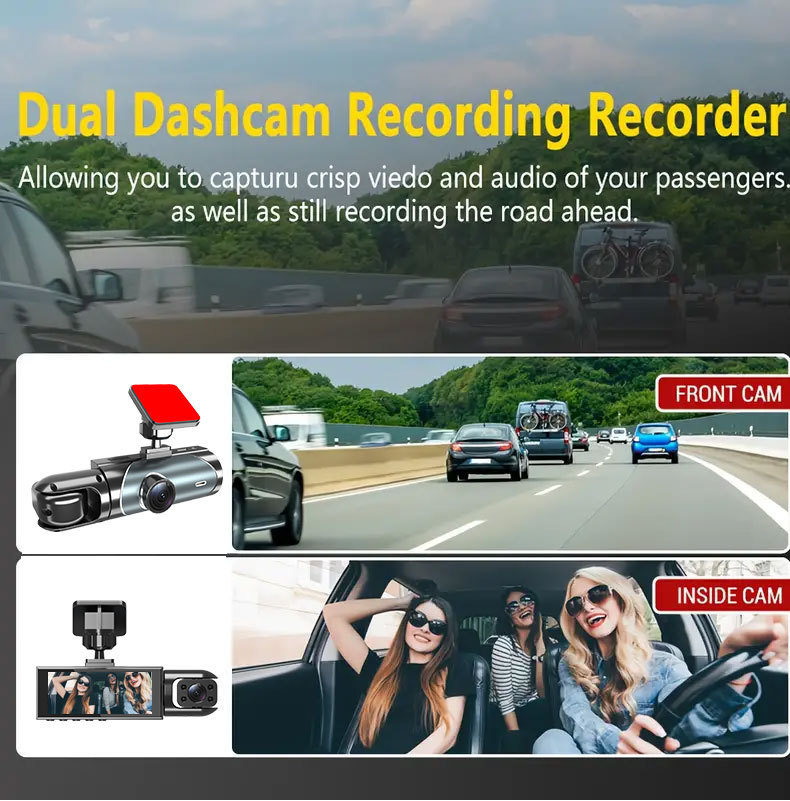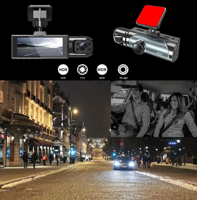C309-3 видеорегистратор с тремя линзами, HD 1080P