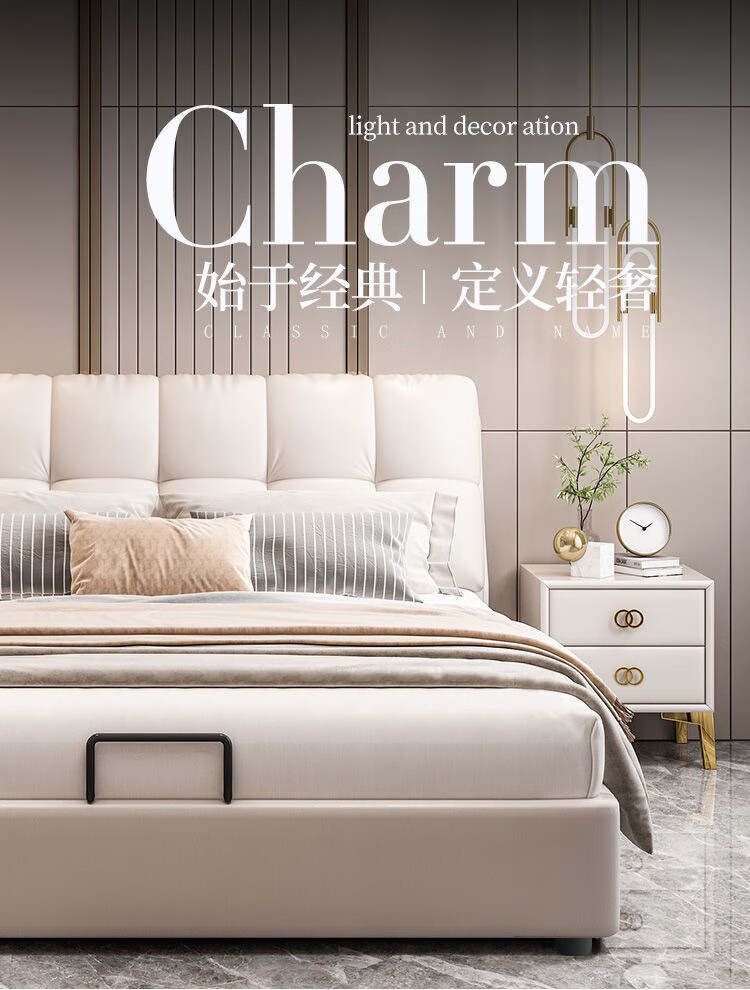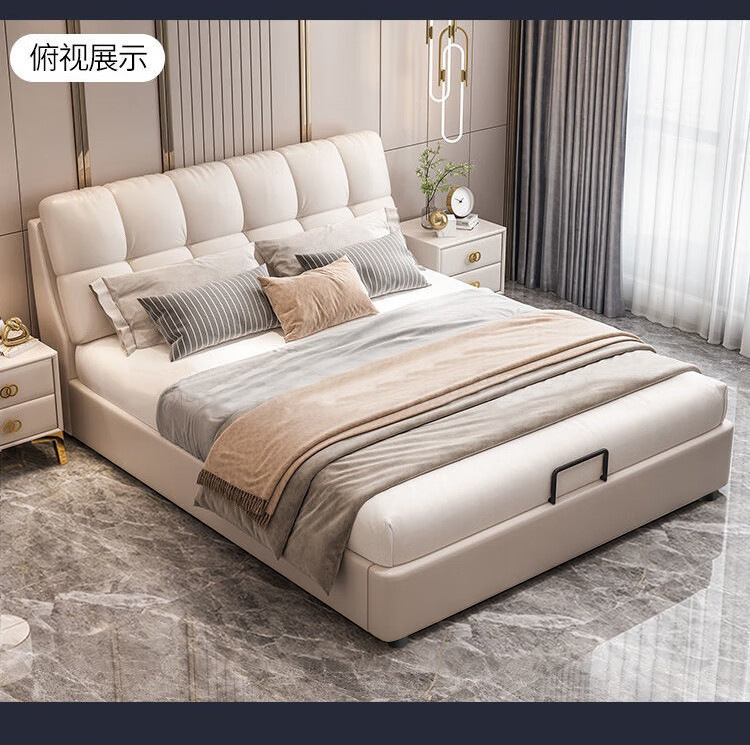 Современная простая кожаная кровать, легкая роскошь, двуспальная свадебная кровать, большая, высококачественная, мягкая, кремовая, кожаная арт-кровать