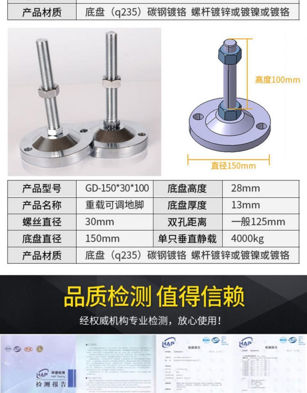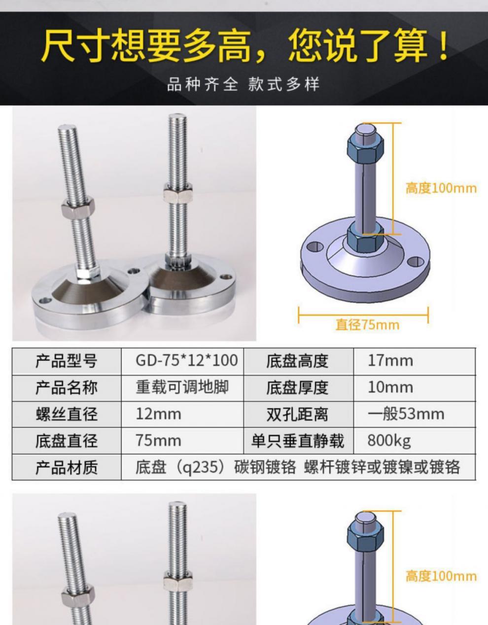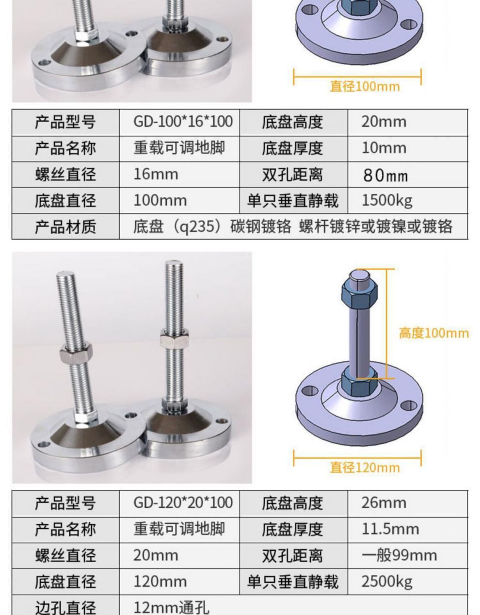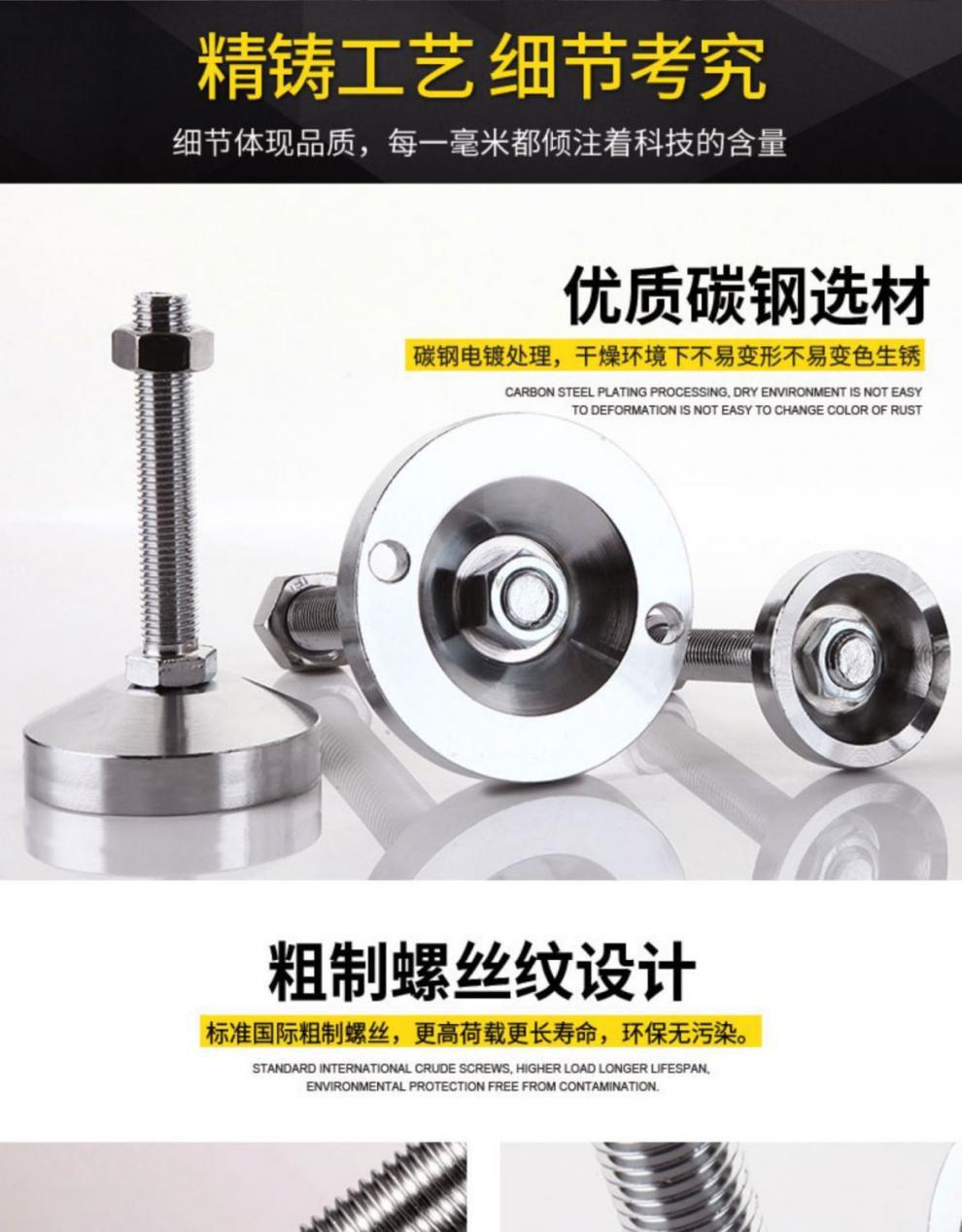 D120 Двойное Отверстие Высокой Прочности Углеродная Сталь Опора Ноги Куб Регулировочный Винт Машинная Нога Металлическая Оцинкованная Подушка Ноги
