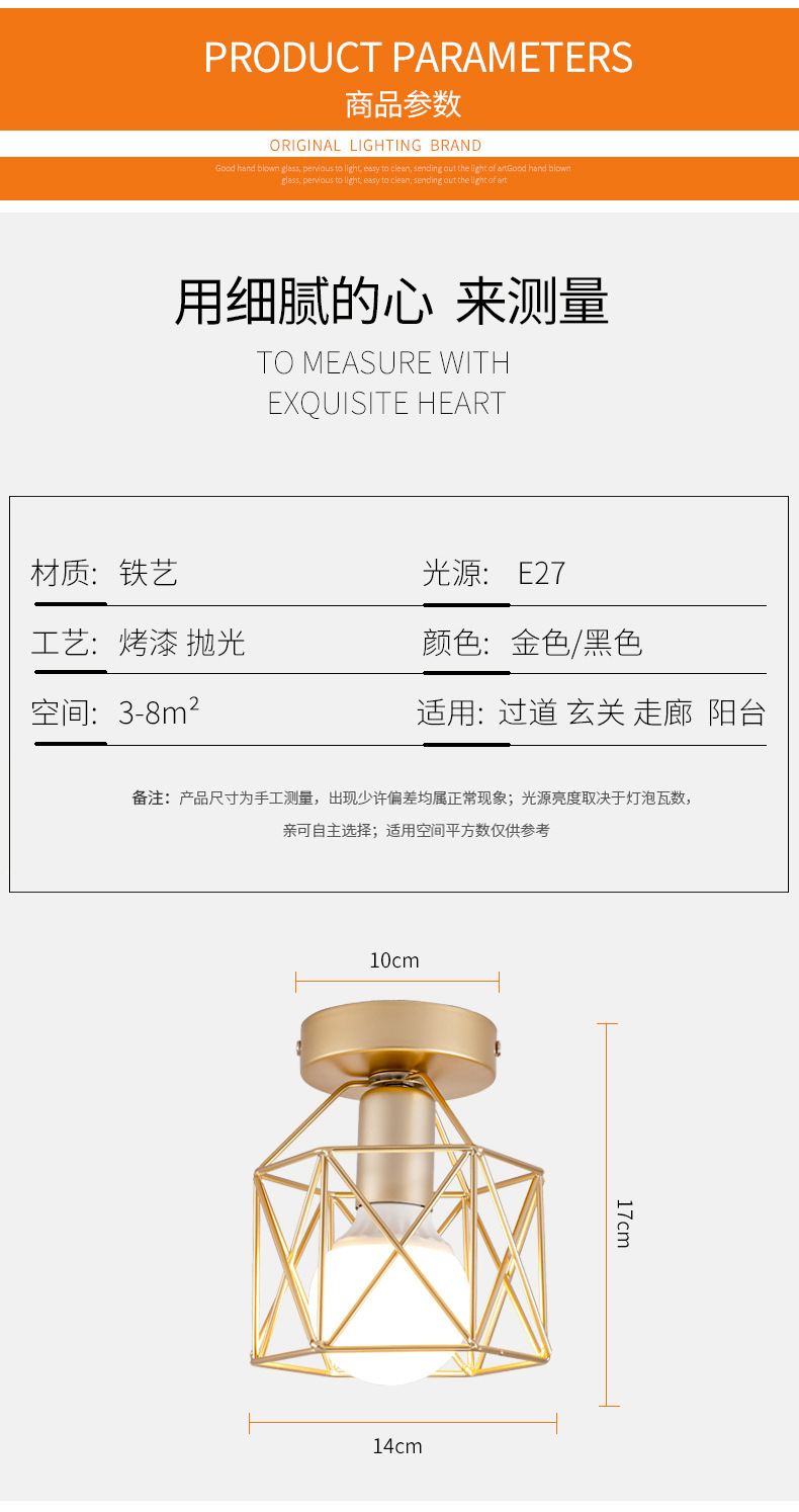 北欧简约后现代阳台灯过道走廊门厅入户玄关衣帽间个性led吸顶灯