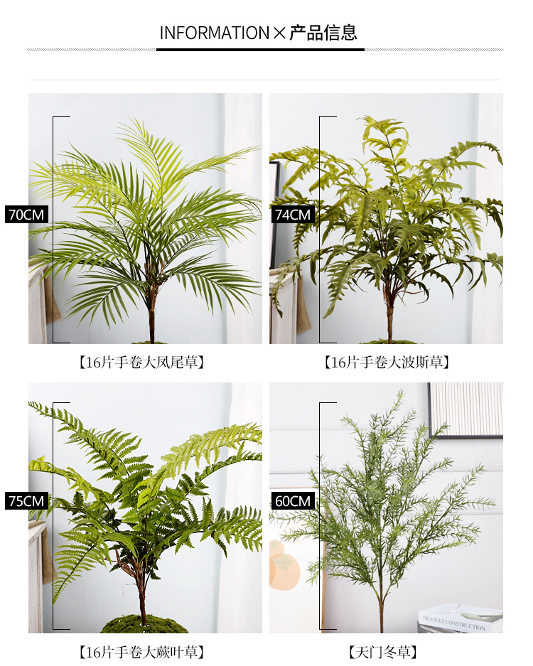 【规格】:天门冬草,长度60cm,60/360pcs,90*46*112cm,6.2/37.2kg