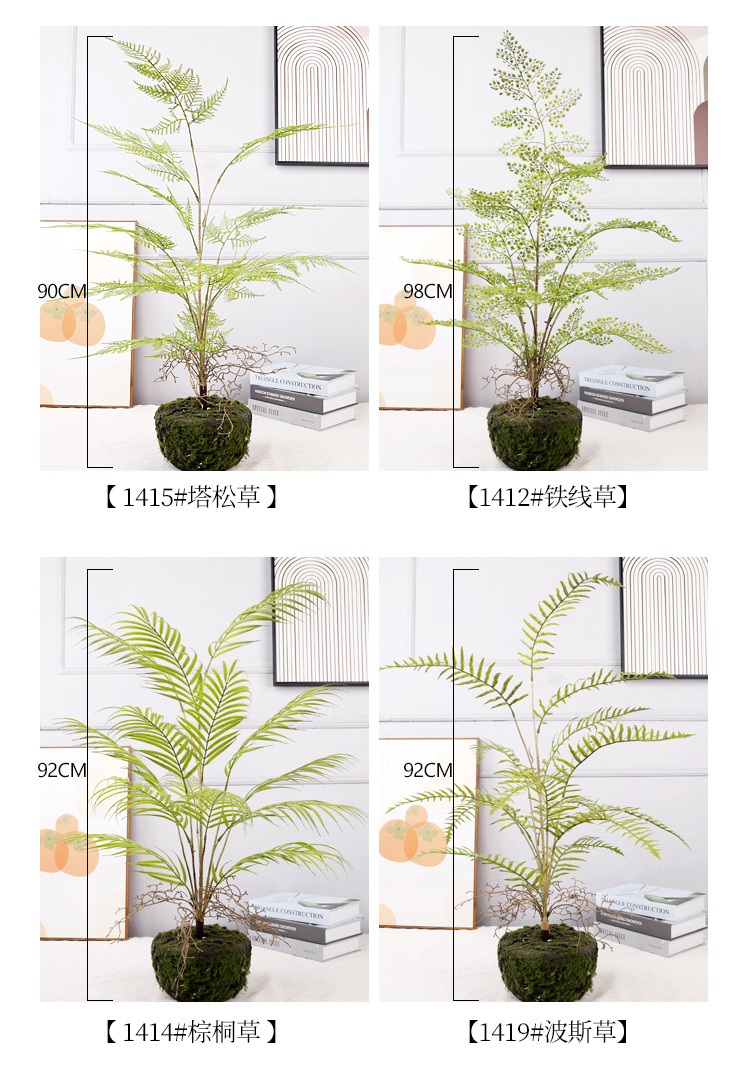 1415#塔松草,1419#波斯草、1412#铁线草、1414#棕桐草、长度:92cm,分3大叉,40/240pcs,90*48*112cm,7.9/47kg