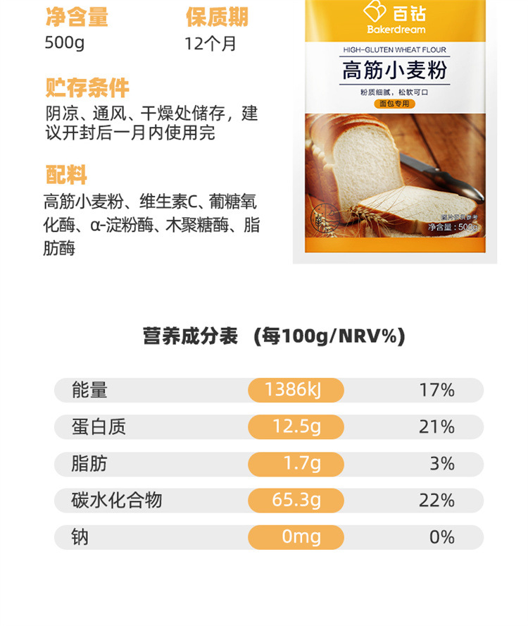 Мука Angel Baizuan 500г, специальная мука для хлеба, высокоглютеновая мука для выпечки пиццы