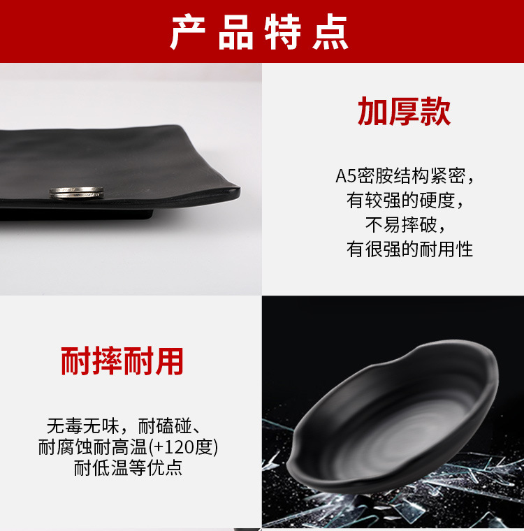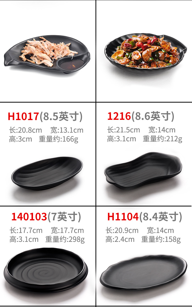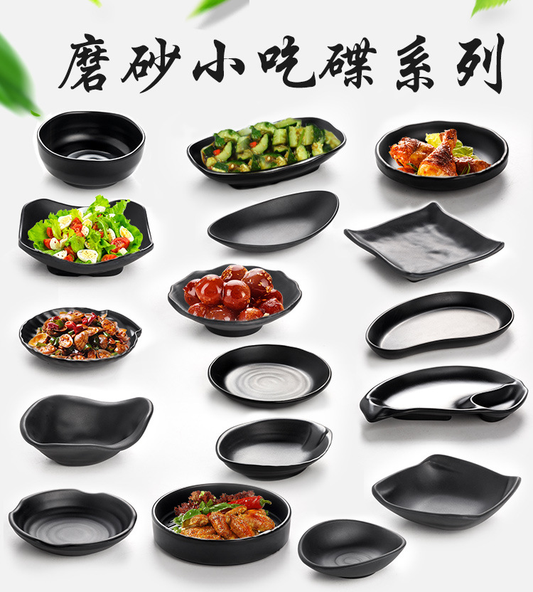Черная меламиновая тарелка, тарелка для закусок, тарелка для холодных блюд, креативная тарелка для жареных блюд, коммерческая тарелка