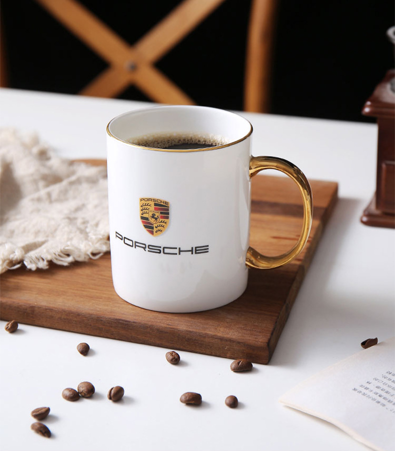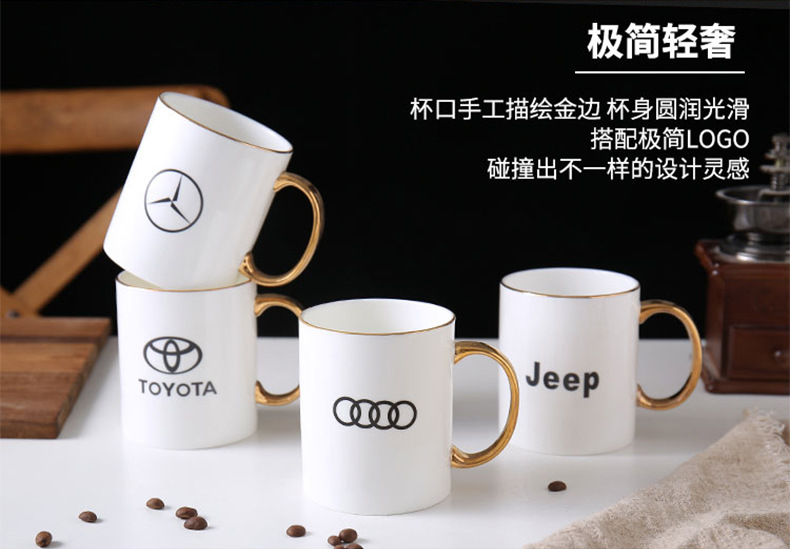 Креативная керамическая кружка из костяного фарфора с золотым ободком и кастомизированным логотипом