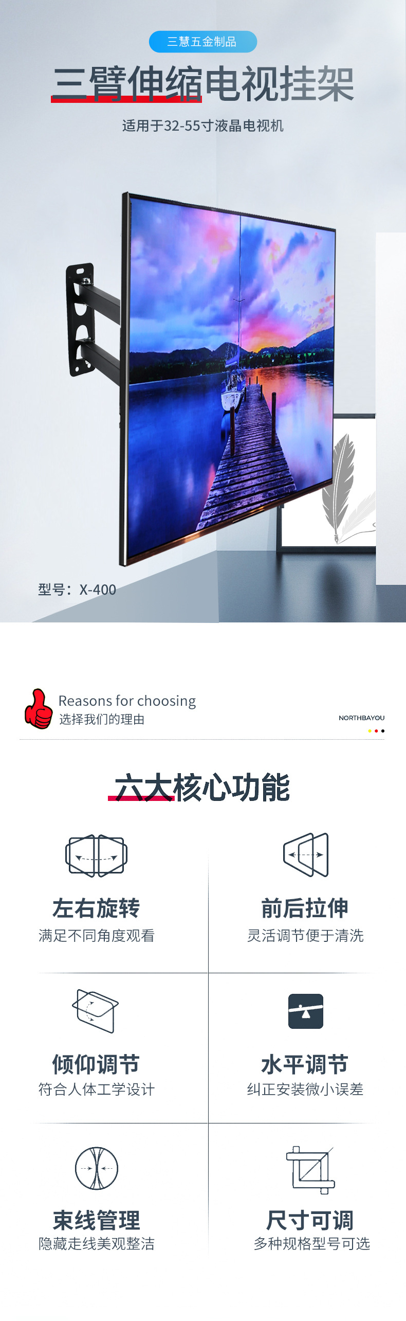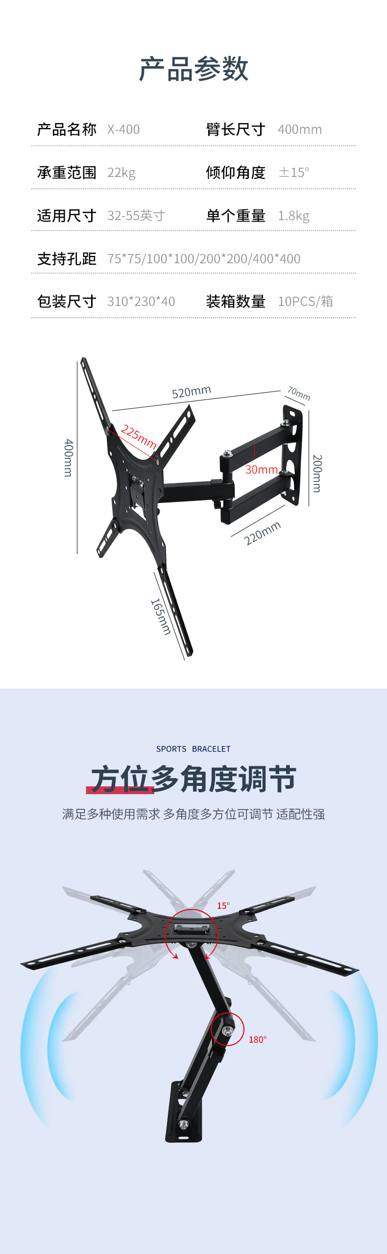 Заводской прямой X-400 стенд для телевизора 32-55 дюймов, кронштейн для LCD монитора, настенный телескопический кронштейн