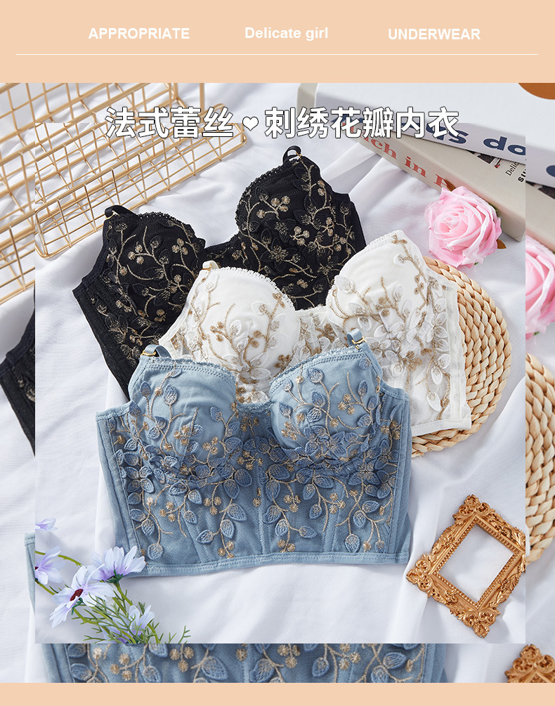 Французский бюстгальтер для женщин с маленькой грудью, собранный, контроль живота, противосгибание, регулируемый кружевной бюстгальтер